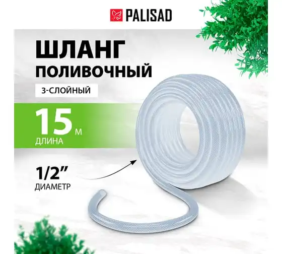 Поливочный шланг PALISAD прозрачный, армированный, 3-х слойный, 1/2", 15 м 67360