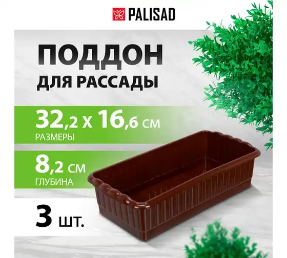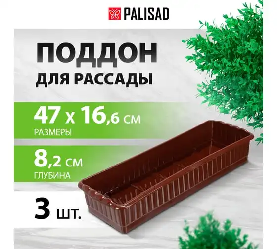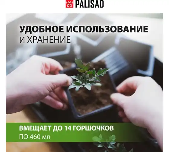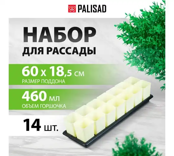 Набор для рассады PALISAD поддон 600x185x45 мм, с дренажной системой, 14 горшочков по 460 мл. 643452