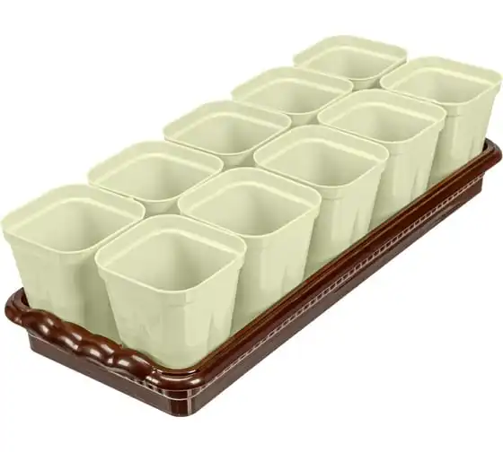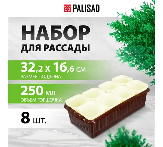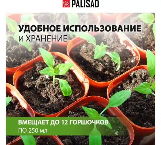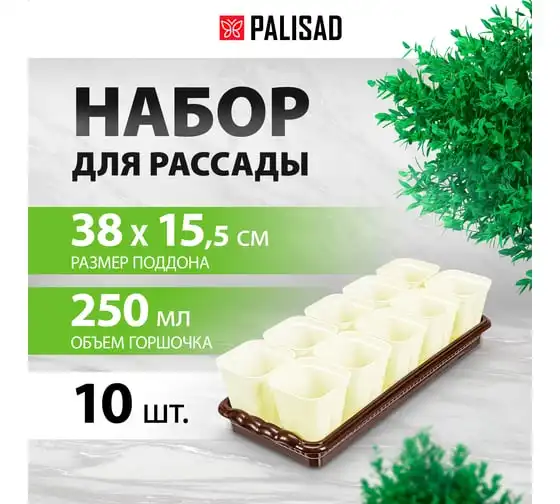 Набор для рассады PALISAD, поддон 380x155x40 мм, 10 горшочков по 250 мл с выдвижным дном 643449