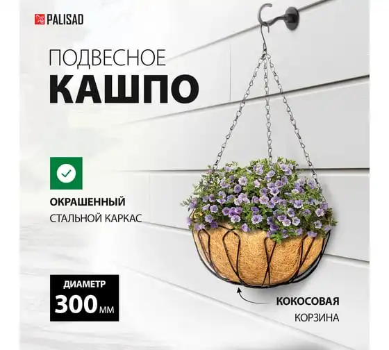 Подвесное кашпо PALISAD 30 см с кокосовой корзиной 69002