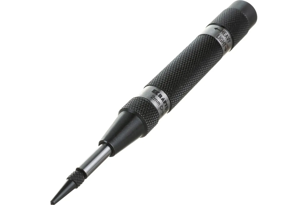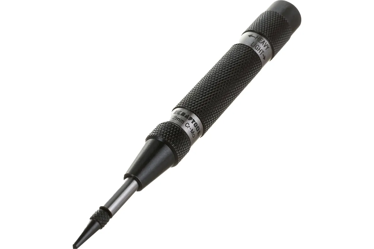 Высокоточный автоматический кернер KRAFTOOL 21425-12 предназначен для разметки металлических и неметаллических материалов. Инновационная автоматическая конструкция обеспечивает простую и точную разметку. Износостойкий сменный наконечник из хромомолибденовой стали, закаленный до твердости 59 HRC, гарантирует длительный срок службы инструмента. Специальная конструкция и высокоточная обработка движущихся деталей обеспечивает высокую надежность.Подходит для профессионального использования.