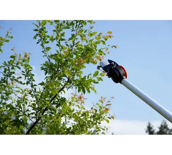 Универсальный высоторез предназначен для резки свежей древесины. Вертикальный рабочий диапазон около 4 м. Прочная конструкция штанги изготовлена из алюминия, имеет прорезиненные ручки в местах хвата. Лезвия изготовлены из углеродистой стали. Материал инструмента: сталь, полипропилен, резина.