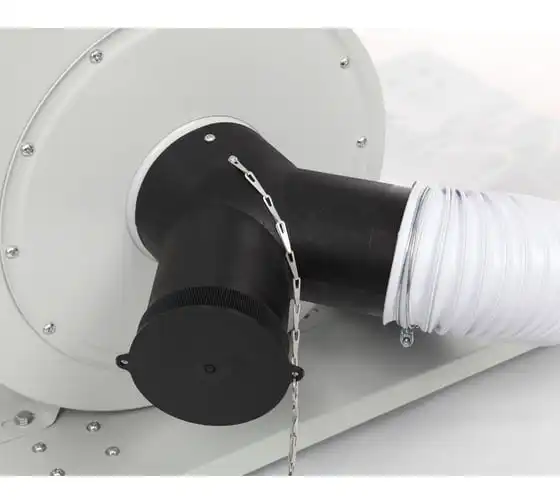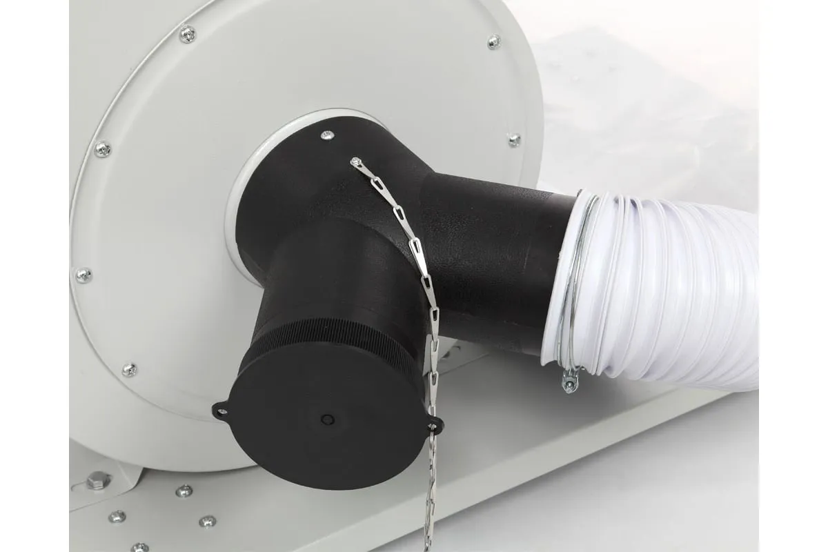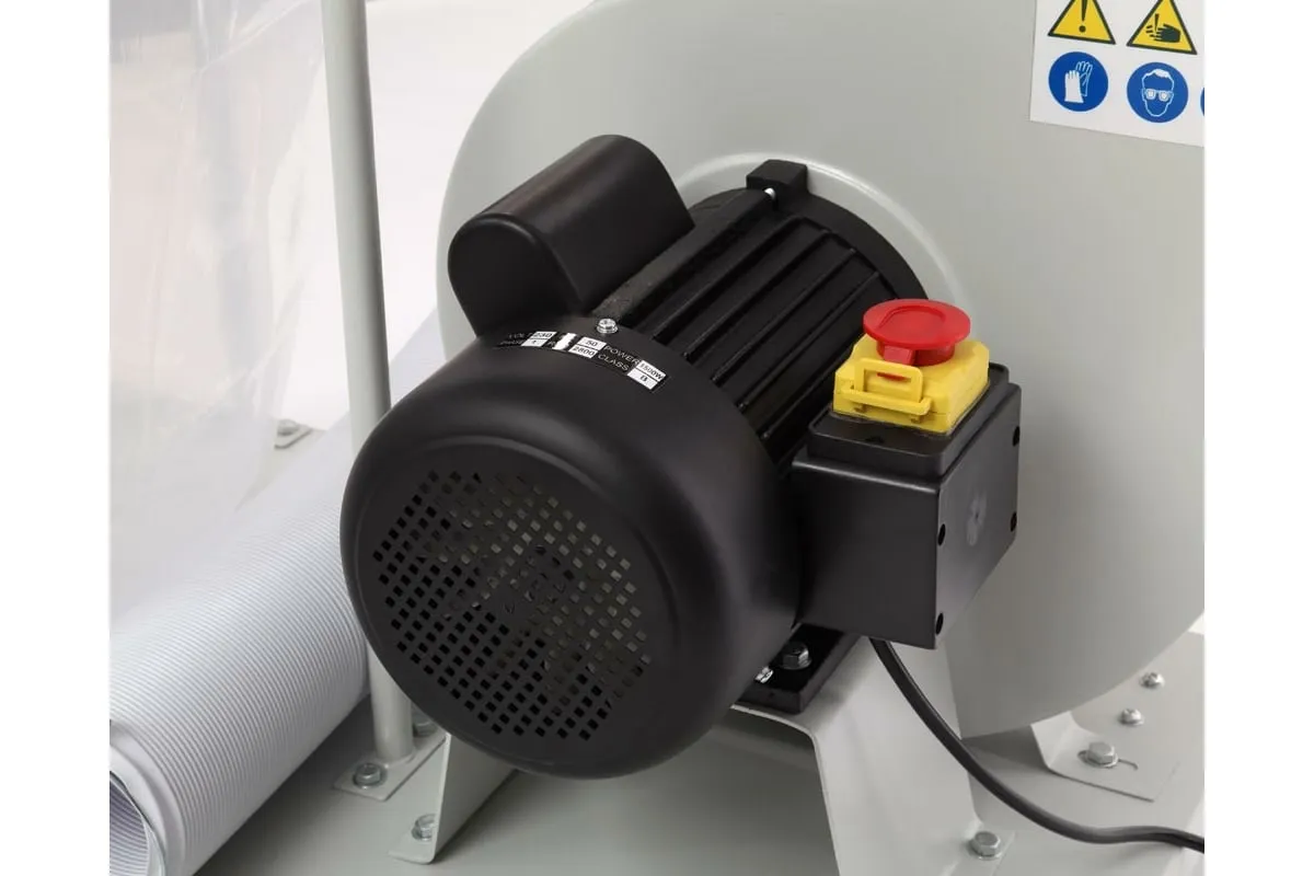 Благодаря специальному адаптеру, закрепленному на входном патрубке, агрегат способен удалять отходы сразу из двух мест проведения операций по резке. Асинхронный двигатель мощностью 1500 Вт обеспечивает высокую производительность всасывания.