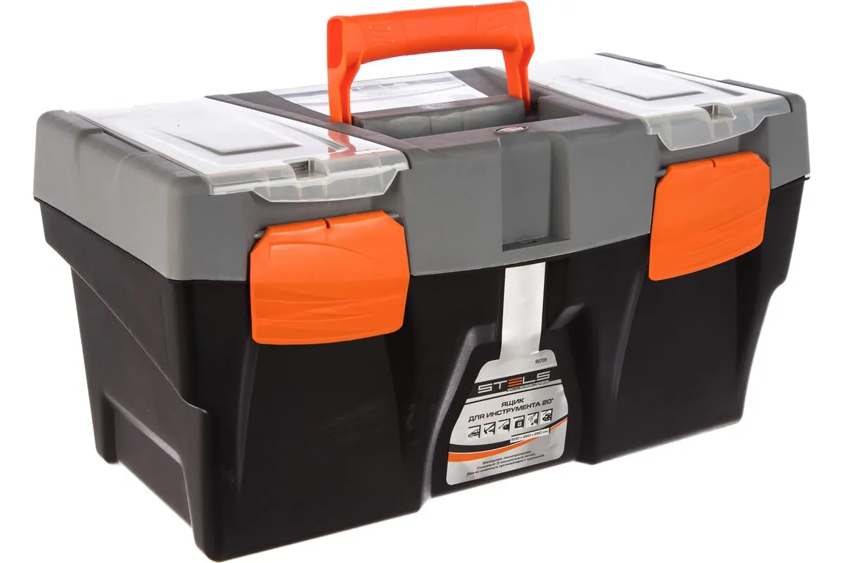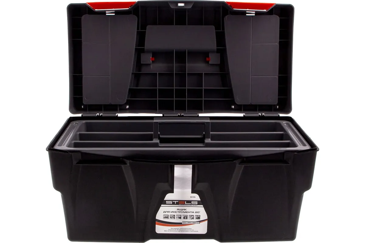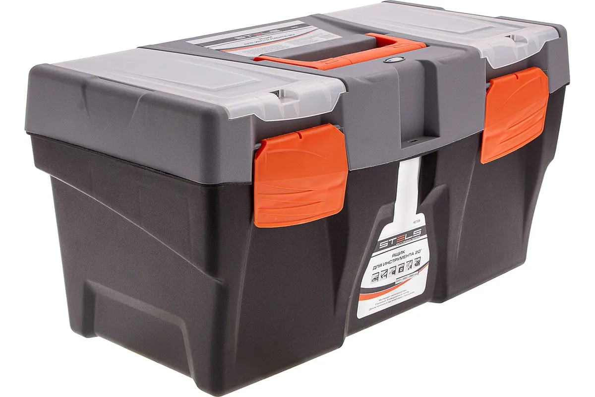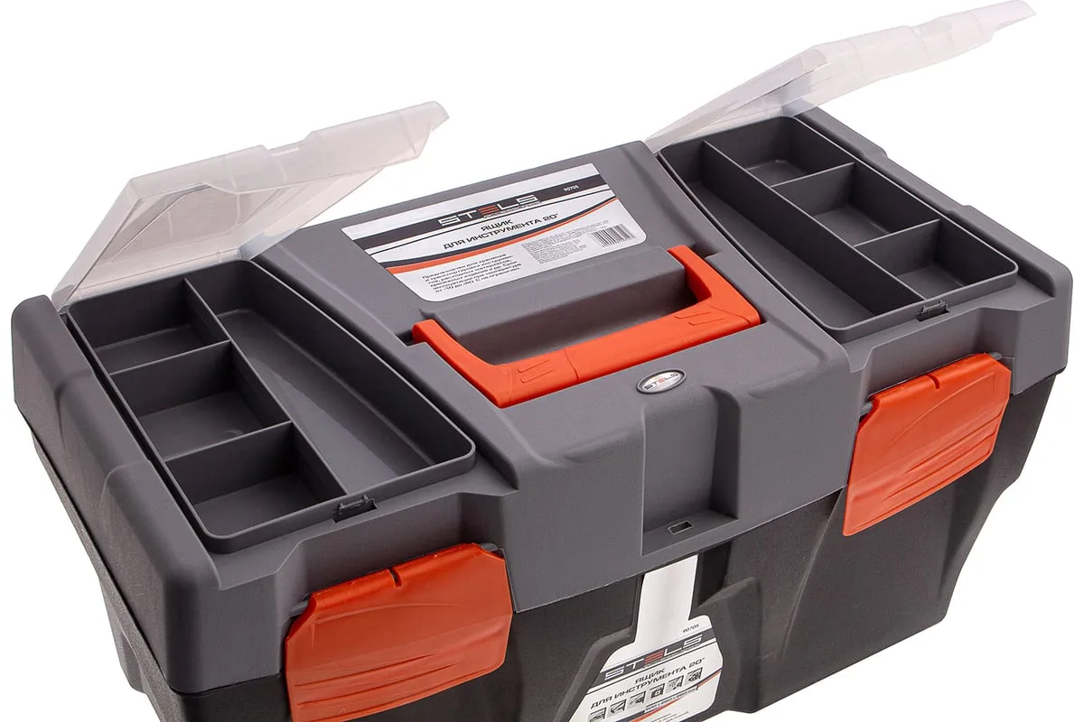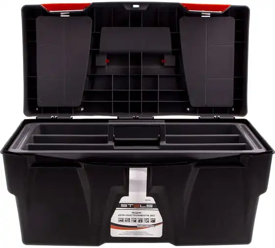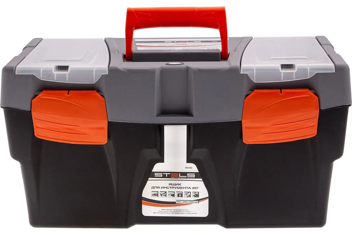Ящик для инструмента Stels 90705, 20 дюймов, габаритами 500 х 260 х 260 мм, из пластика, предназначен для переноски и хранения инструментов, хозяйственных мелочей, рыболовных снастей. Содержимое не рассыпется, поскольку он надежно закрывается. Встроенные в крышку отделения обеспечивают быстрый доступ к крепежам и другим необходимым предметам. Большой ящик для хранения инструментов будет полезен дома, на даче, в гараже и на рыбалке.