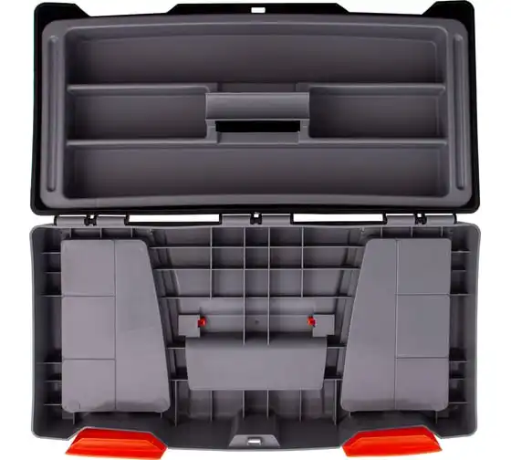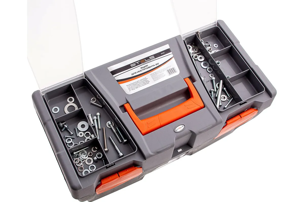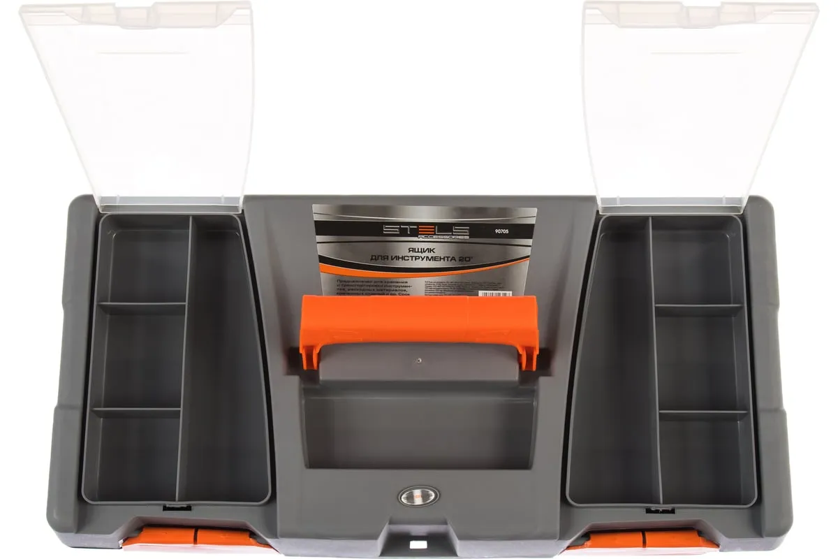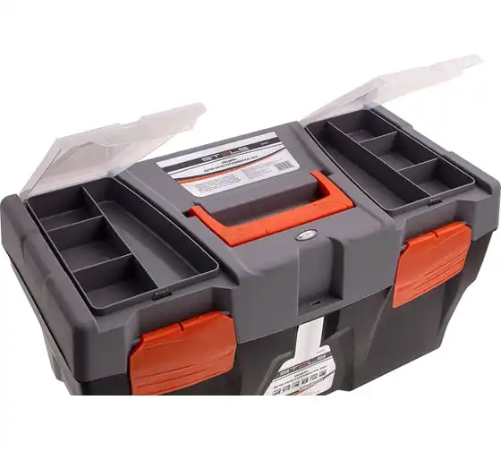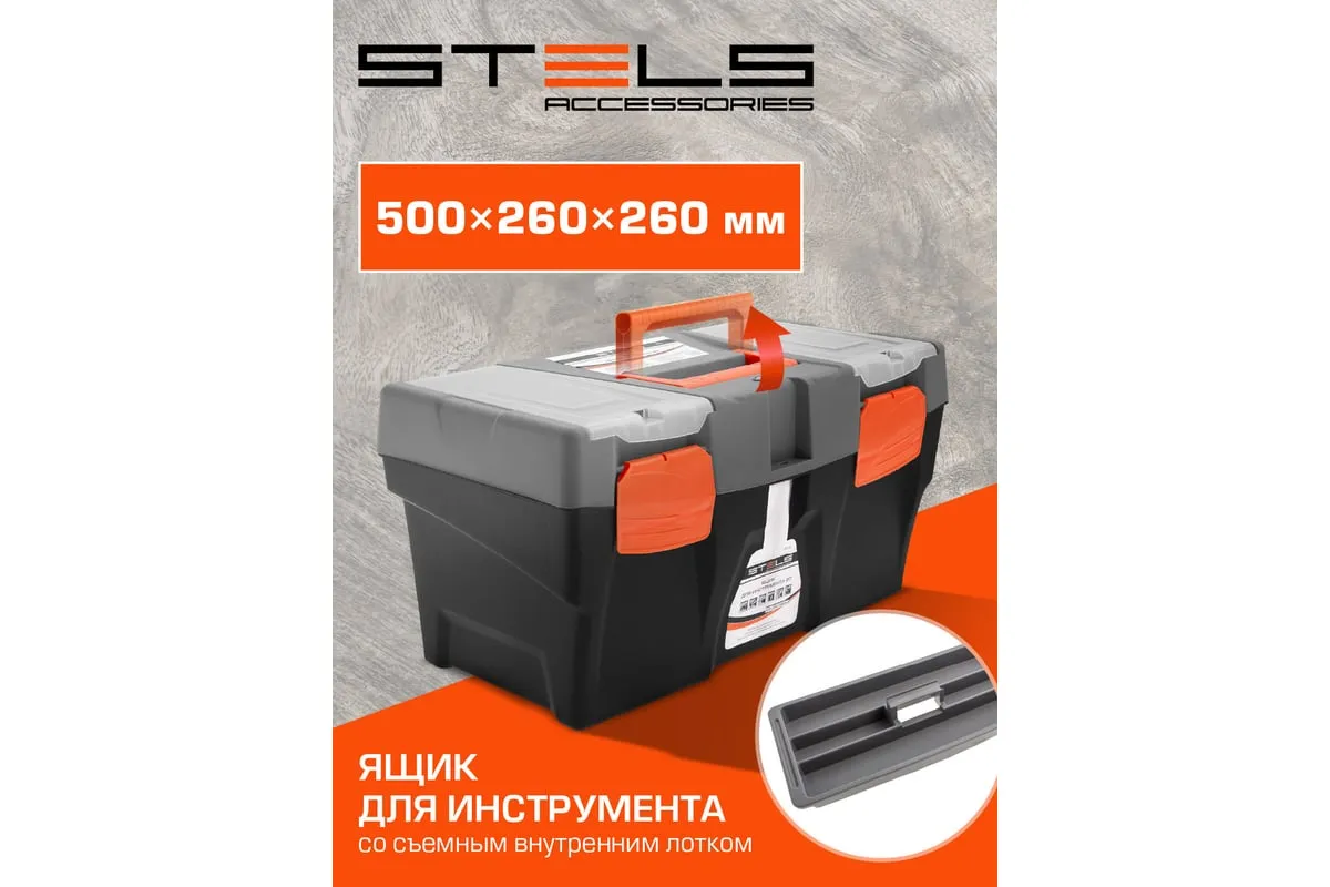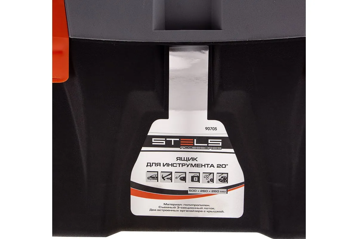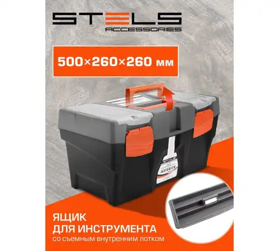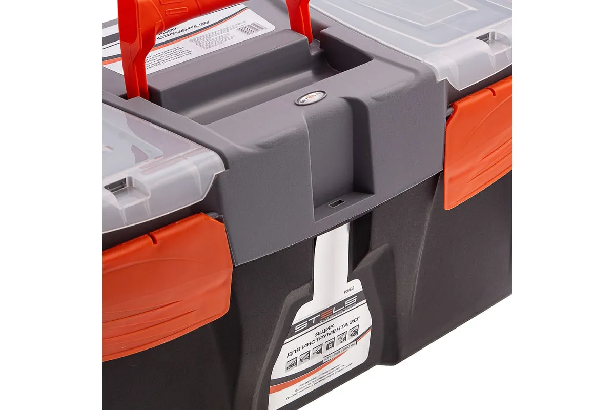 Ящик для инструмента Stels 90705, 20 дюймов, габаритами 500 х 260 х 260 мм, из пластика, предназначен для переноски и хранения инструментов, хозяйственных мелочей, рыболовных снастей. Содержимое не рассыпется, поскольку он надежно закрывается. Встроенные в крышку отделения обеспечивают быстрый доступ к крепежам и другим необходимым предметам. Большой ящик для хранения инструментов будет полезен дома, на даче, в гараже и на рыбалке.