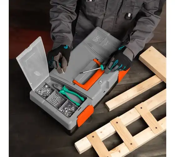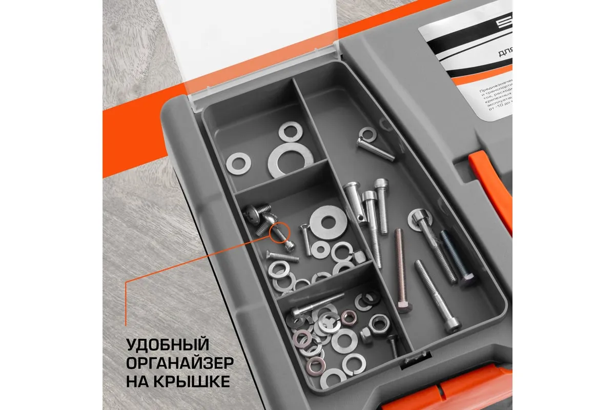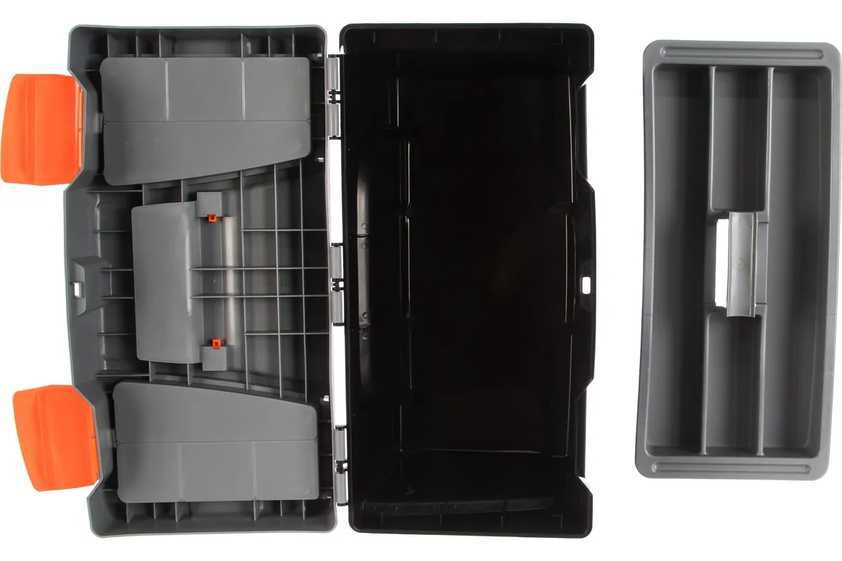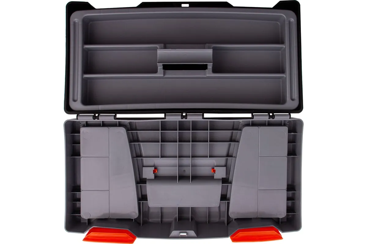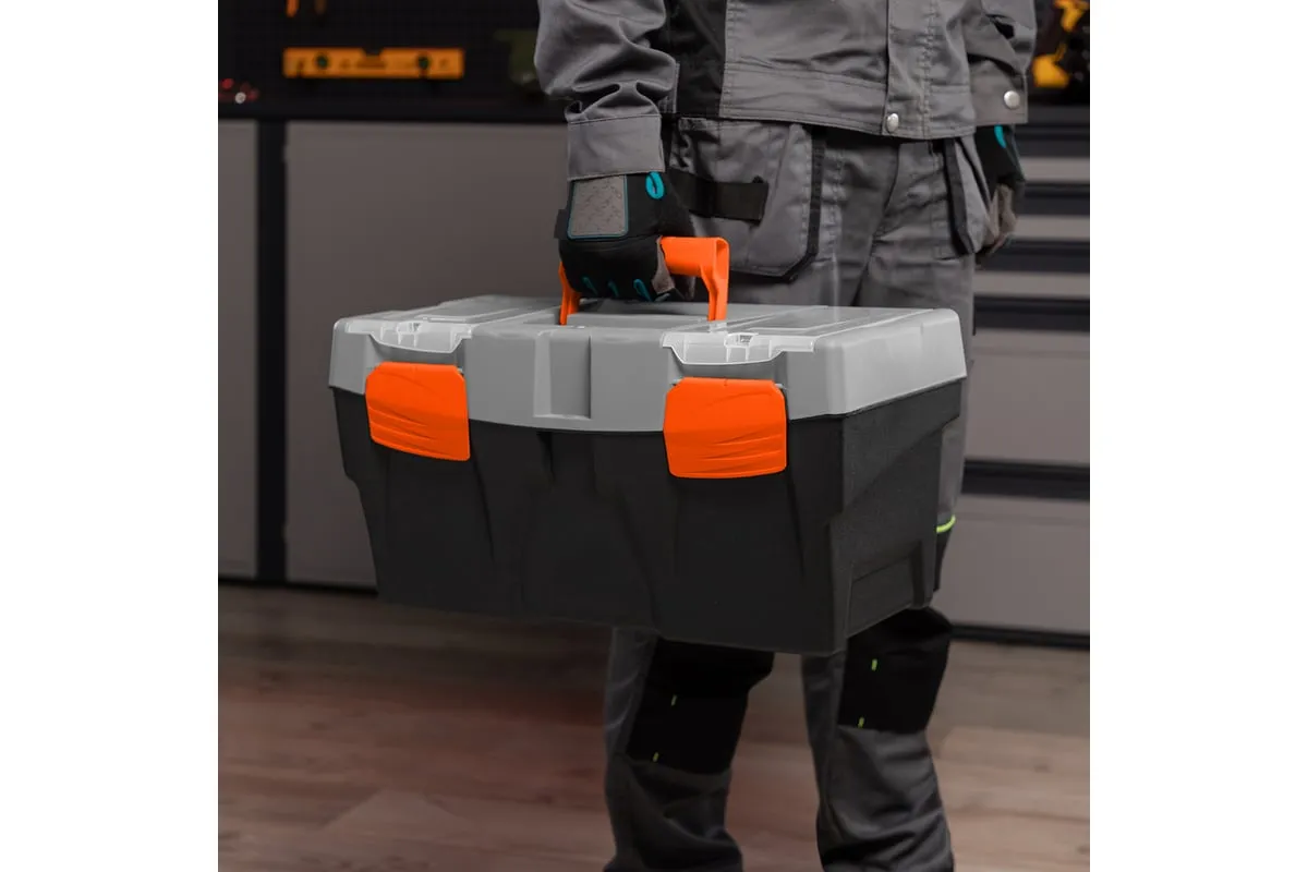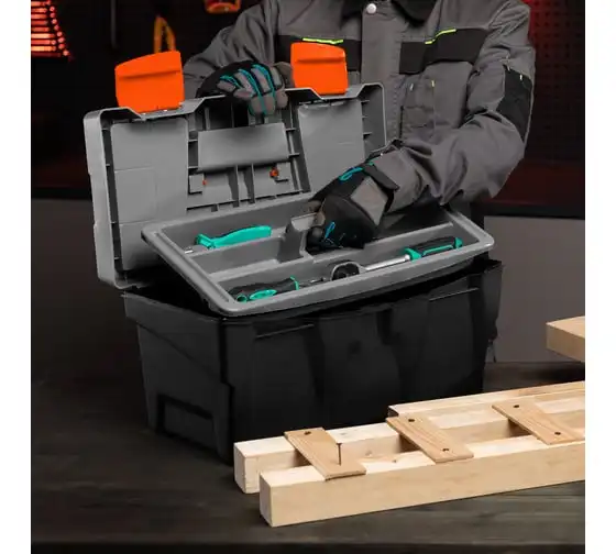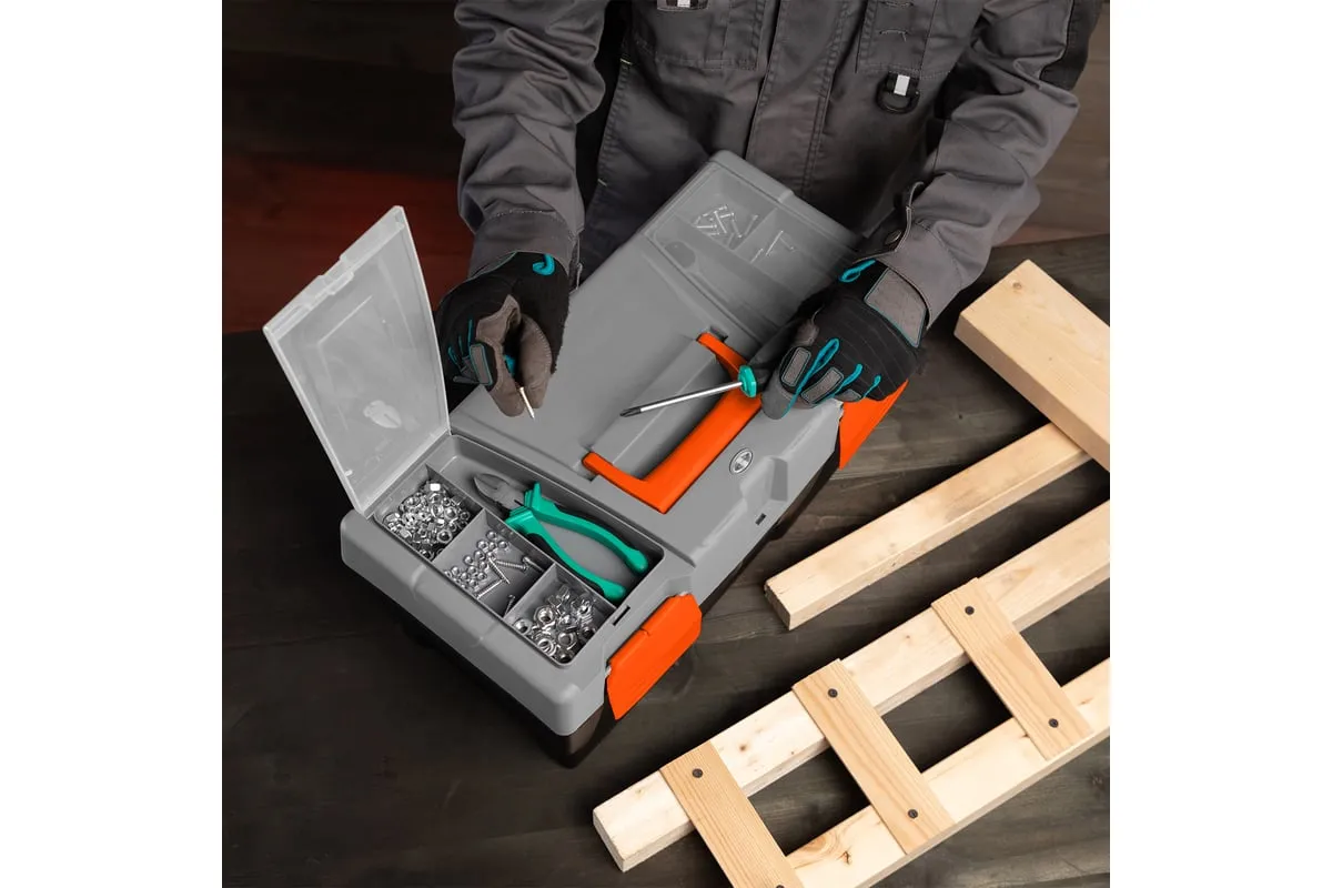 Ящик для инструмента Stels 90705, 20 дюймов, габаритами 500 х 260 х 260 мм, из пластика, предназначен для переноски и хранения инструментов, хозяйственных мелочей, рыболовных снастей. Содержимое не рассыпется, поскольку он надежно закрывается. Встроенные в крышку отделения обеспечивают быстрый доступ к крепежам и другим необходимым предметам. Большой ящик для хранения инструментов будет полезен дома, на даче, в гараже и на рыбалке.