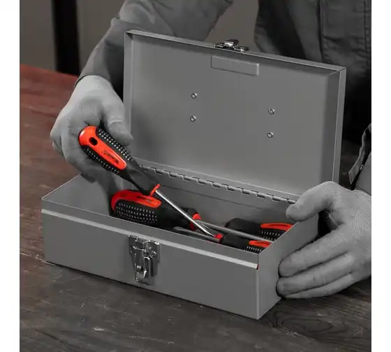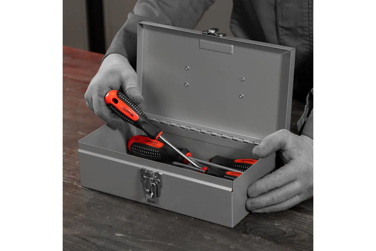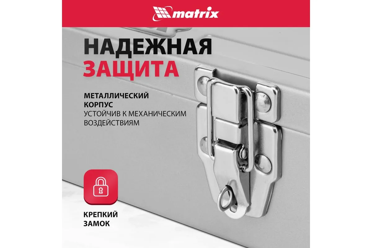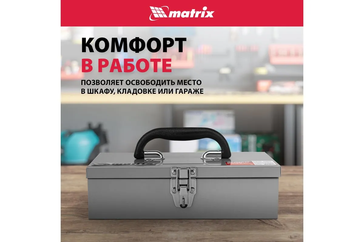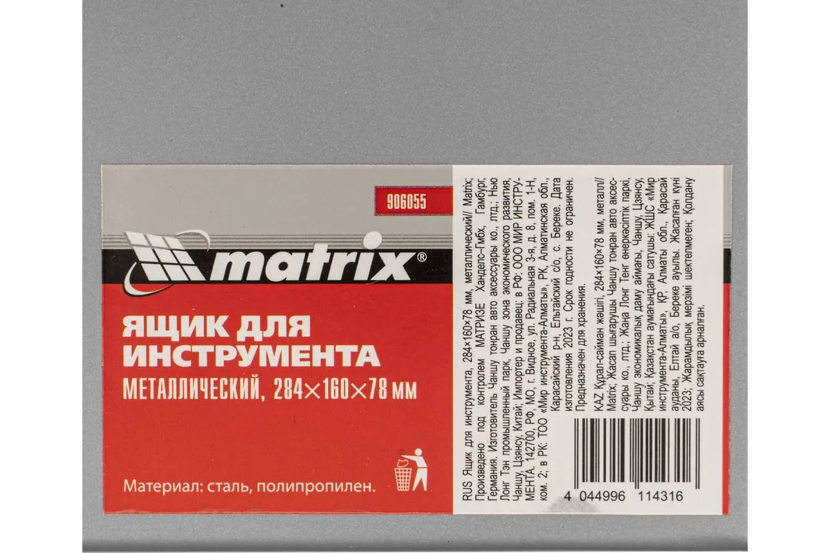 Металлический ящик Matrix 906055 размером 284 х 160 х 78 мм предназначен для хранения инструментов и хозяйственных мелочей. Позволяет освободить место в шкафу, кладовке или гараже. Бокс будет полезен автолюбителю или домашнему мастеру, а также рыбаку для размещения снастей.