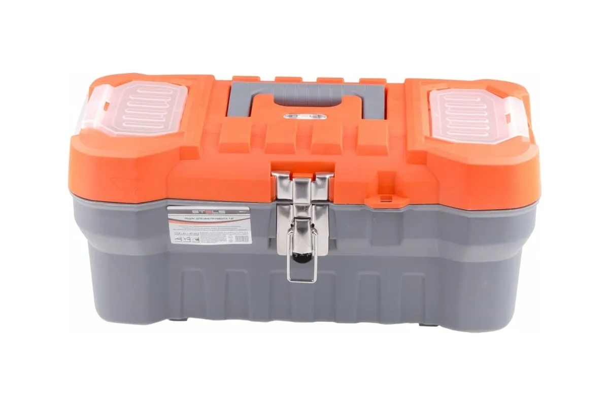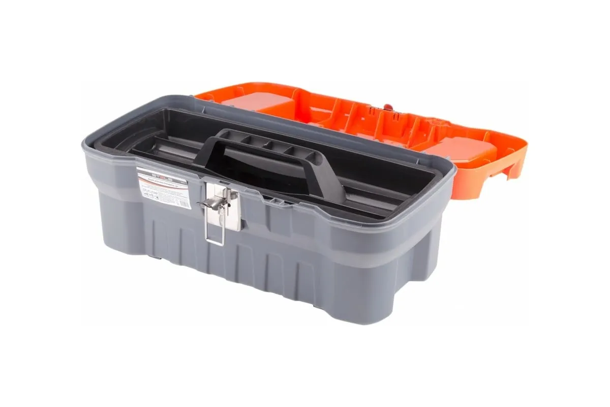 Ящик для инструмента с металлическими замками Stels 90711, 16 дюймов, 410 х 210 х 175 мм, — альтернатива коробке для инструментов. В нем можно расположить ручной инструмент, крепежи, хозяйственные мелочи, а также рыболовные снасти. В крышке имеются встроенные органайзеры для мелких деталей, что увеличивает функциональность ящика. Его удобно брать в поездки, также ящик пригодится дома, на даче или в гараже.