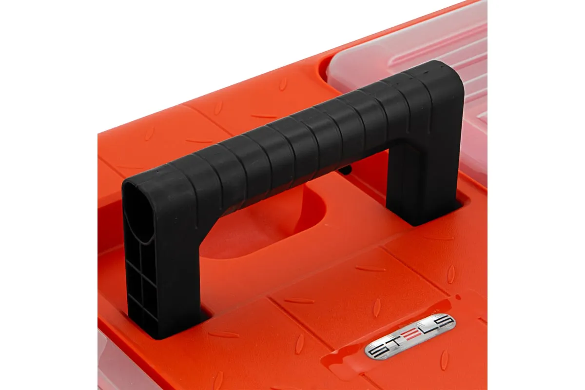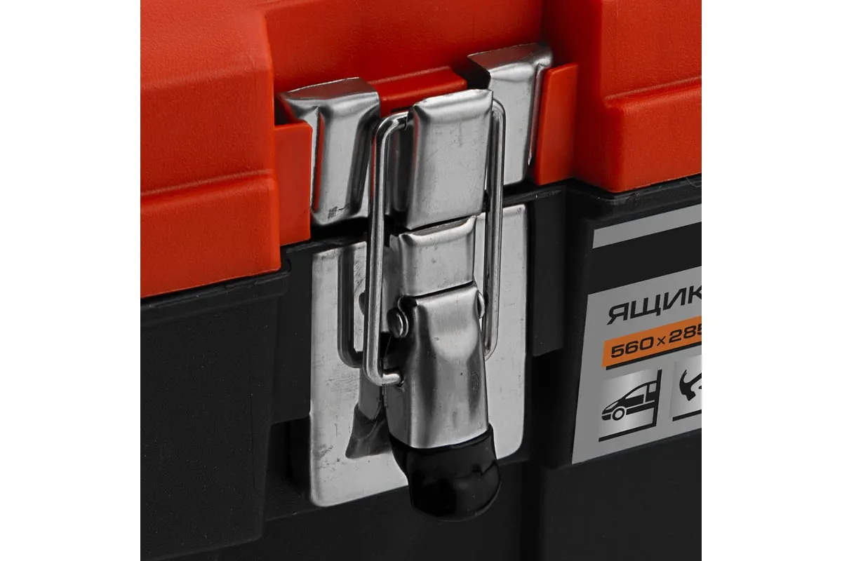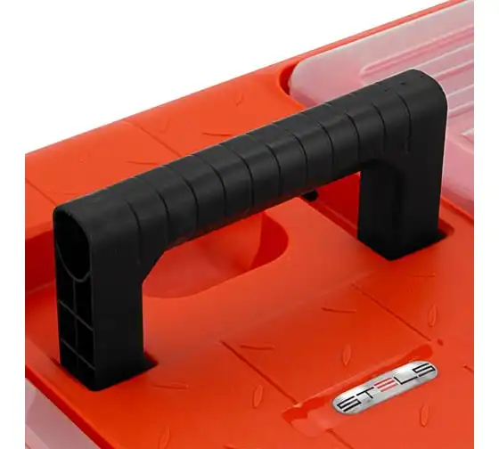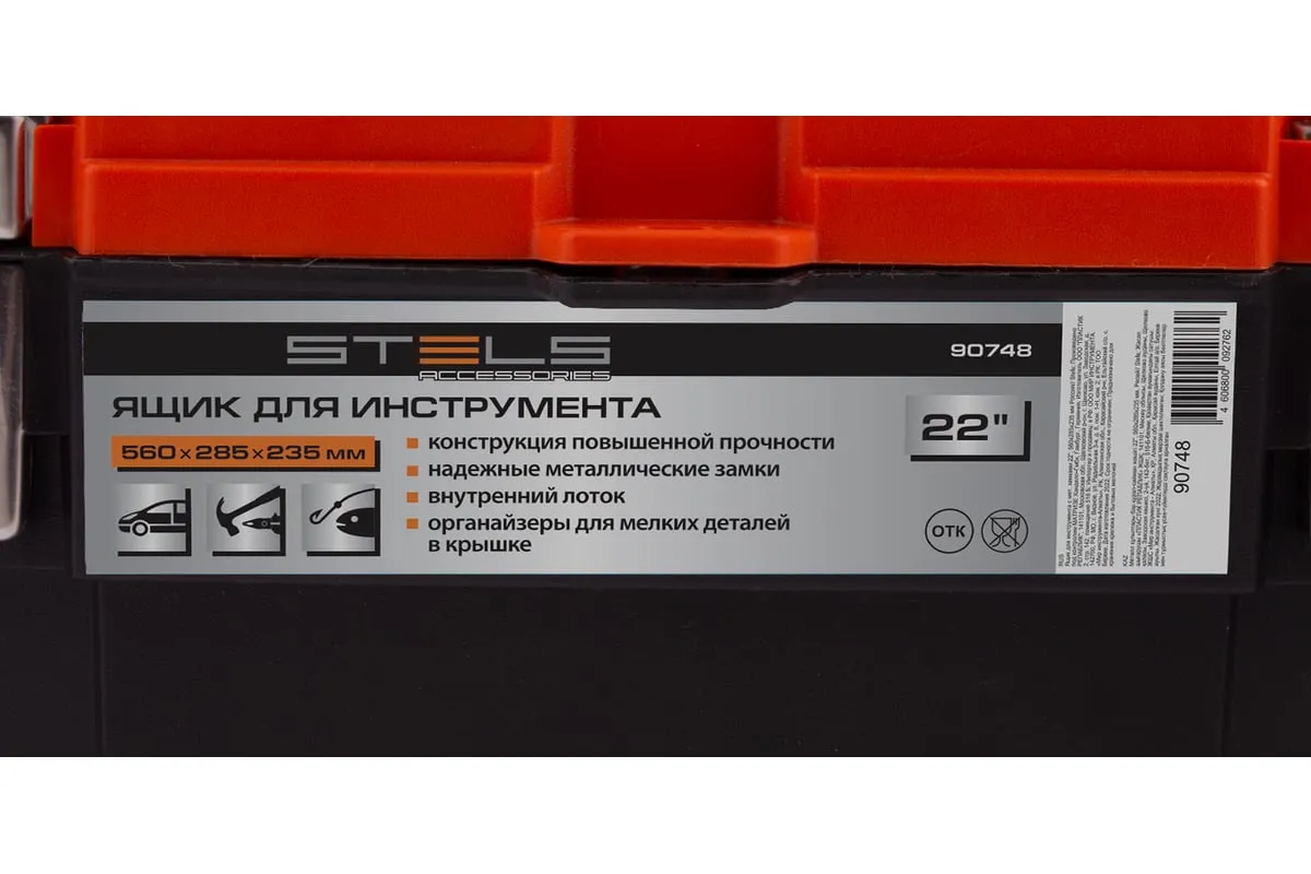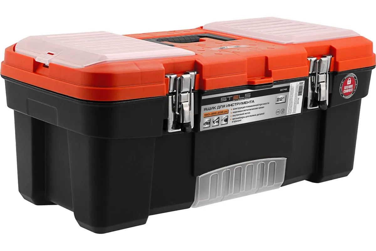 Ящик для инструмента с металлическими замками STELS 22", 560x285x235 мм 90748 — альтернатива коробке для инструментов. В нем можно расположить ручной инструмент, крепежи, хозяйственные мелочи, а также рыболовные снасти.