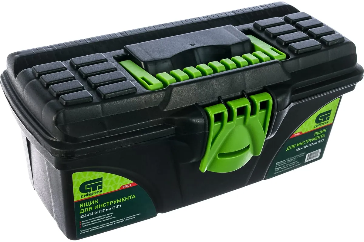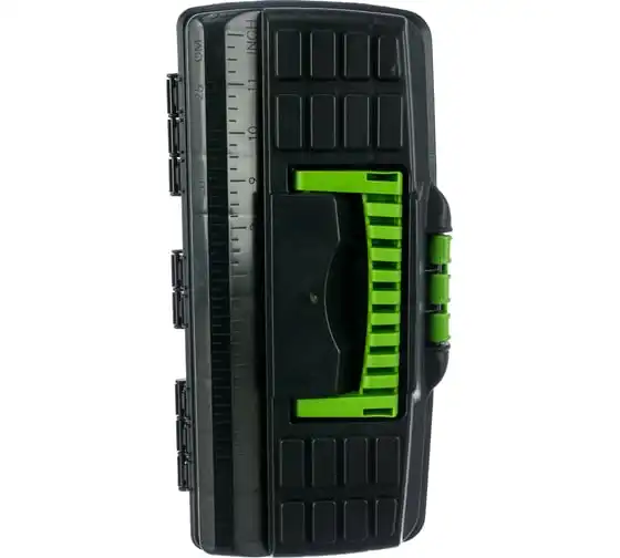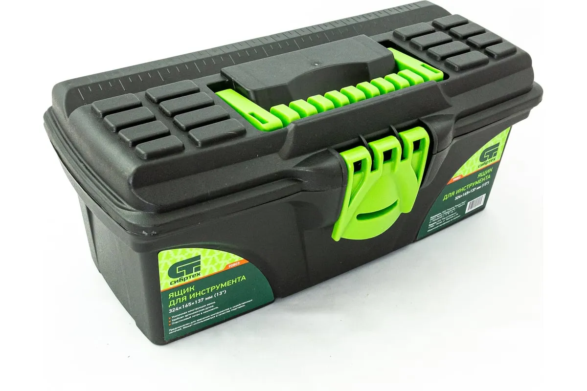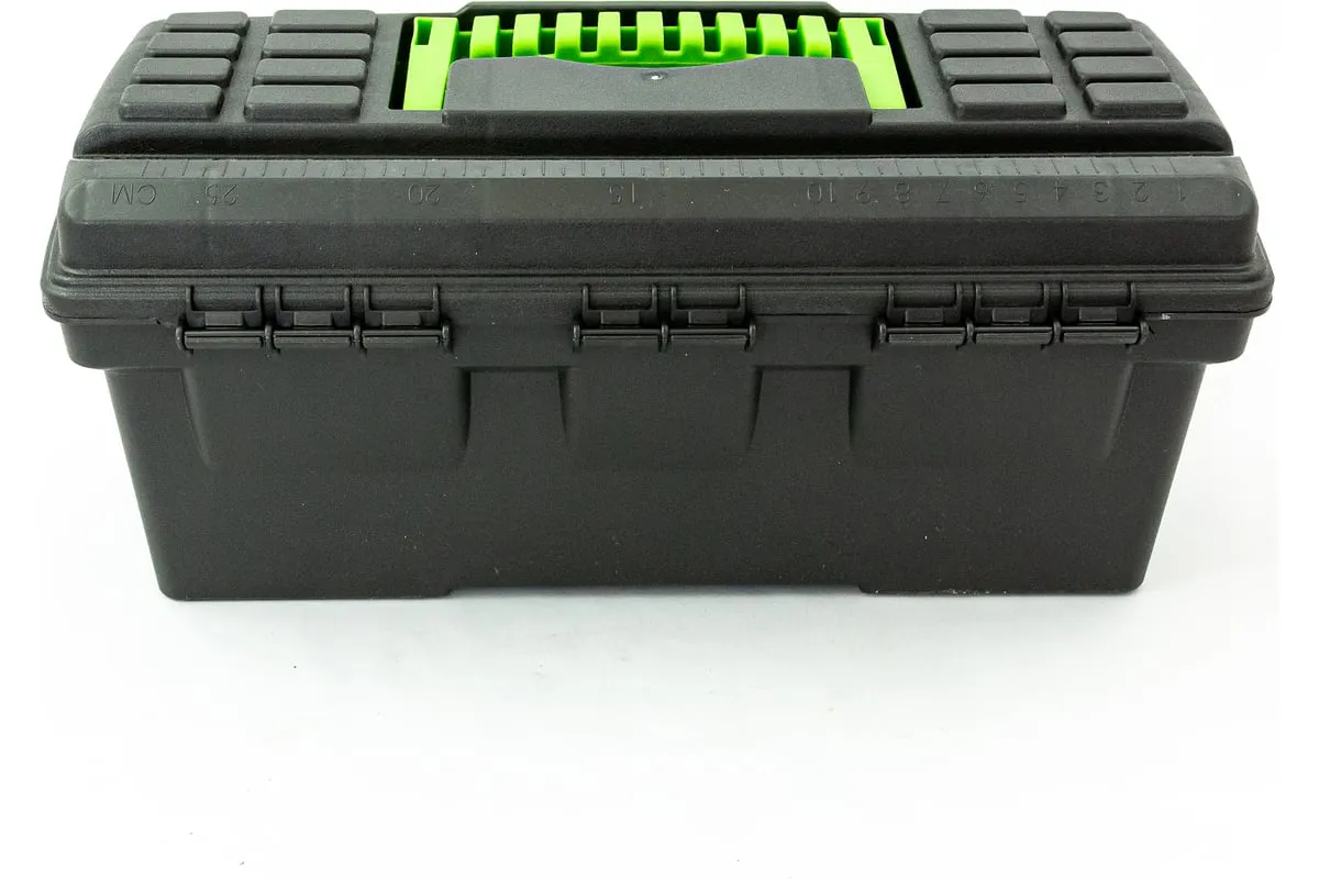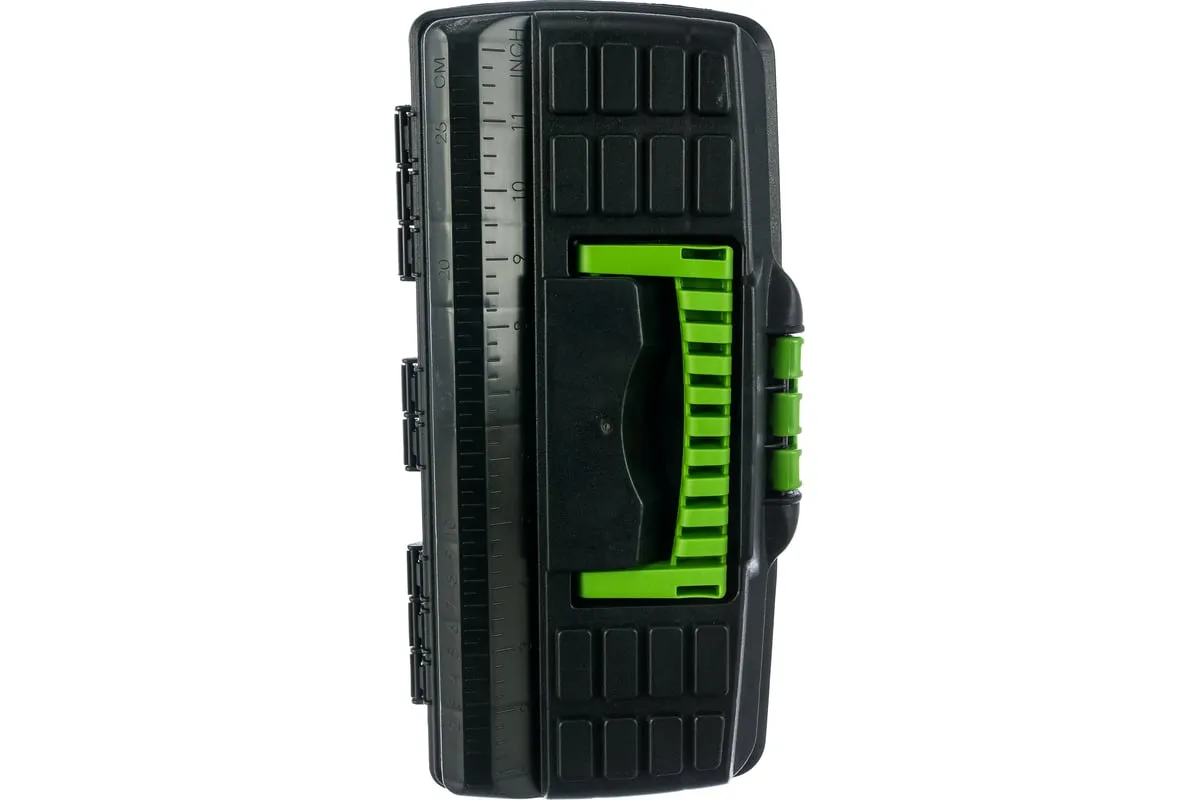 Ящик для инструмента Сибртех 90803 из пластика, 13 дюймов, 324 х 165 х 137 мм, — удобное вместилище для инструментов, бытовых мелочей, рыболовных снастей. На крышку нанесена измерительная шкала в сантиметрах и дюймах, поэтому можно проводить измерения, даже если под рукой нет линейки. Ящик пригодится в поездке, на рыбалке, а также дома, на даче или в гараже.