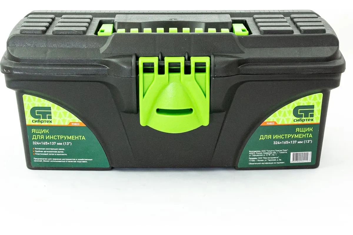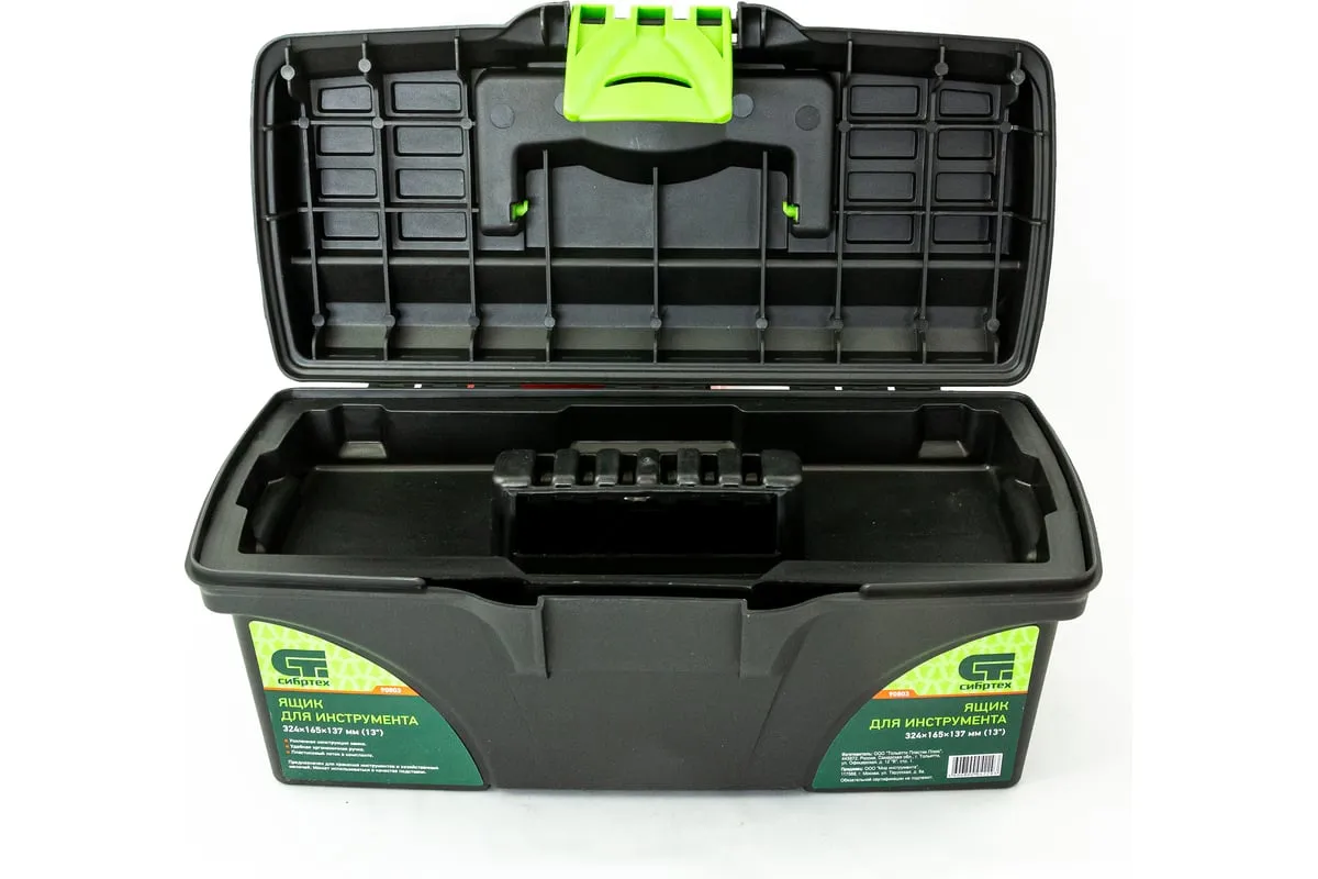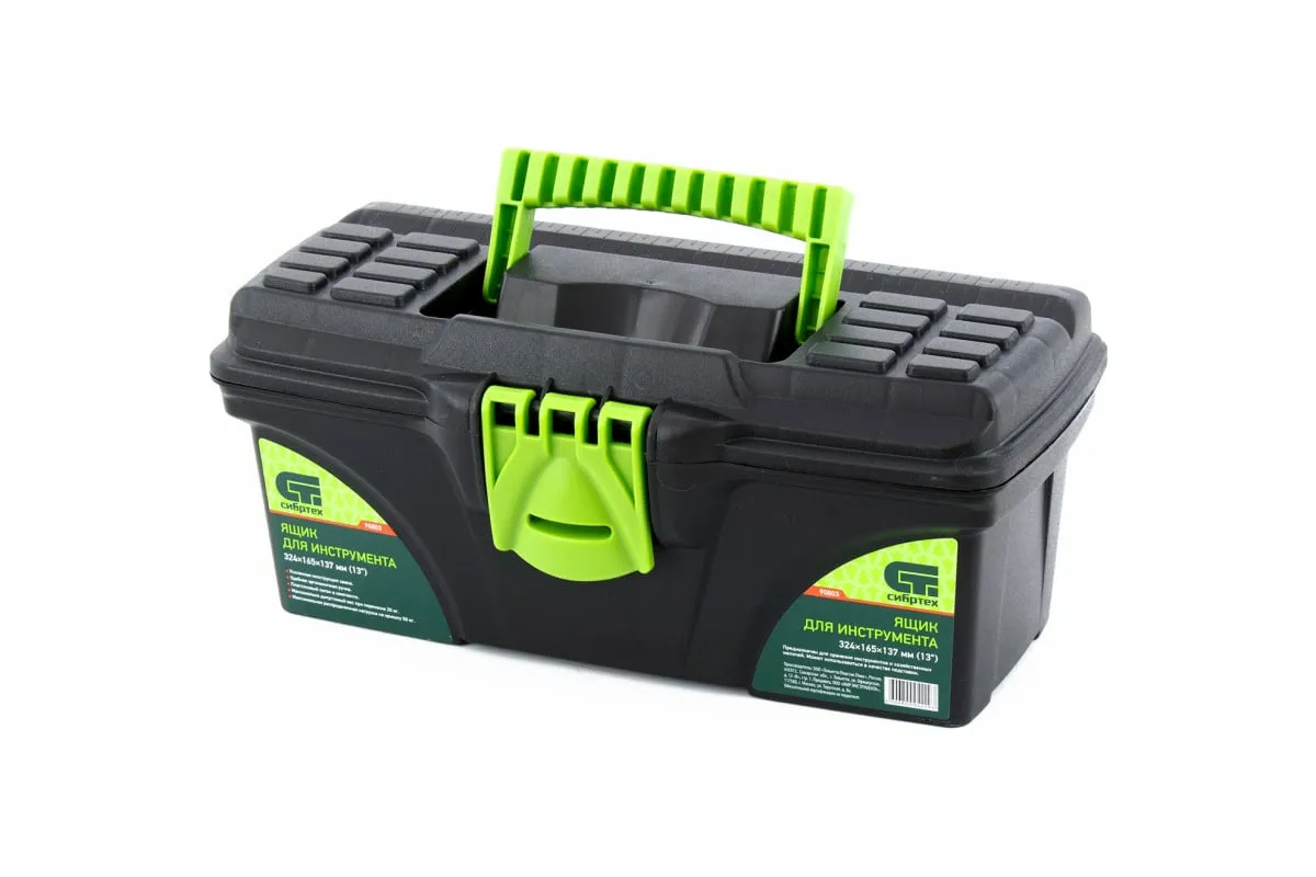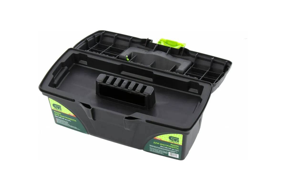 Ящик для инструмента Сибртех 90803 из пластика, 13 дюймов, 324 х 165 х 137 мм, — удобное вместилище для инструментов, бытовых мелочей, рыболовных снастей. На крышку нанесена измерительная шкала в сантиметрах и дюймах, поэтому можно проводить измерения, даже если под рукой нет линейки. Ящик пригодится в поездке, на рыбалке, а также дома, на даче или в гараже.
