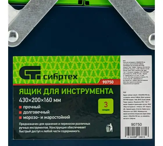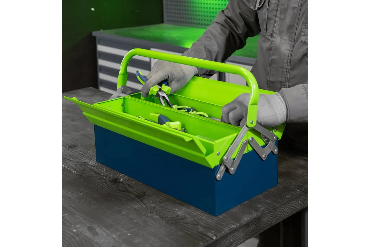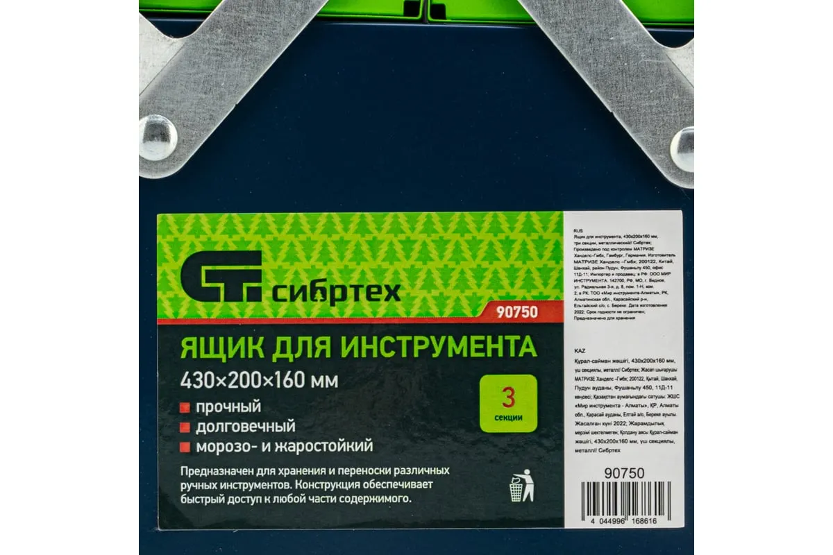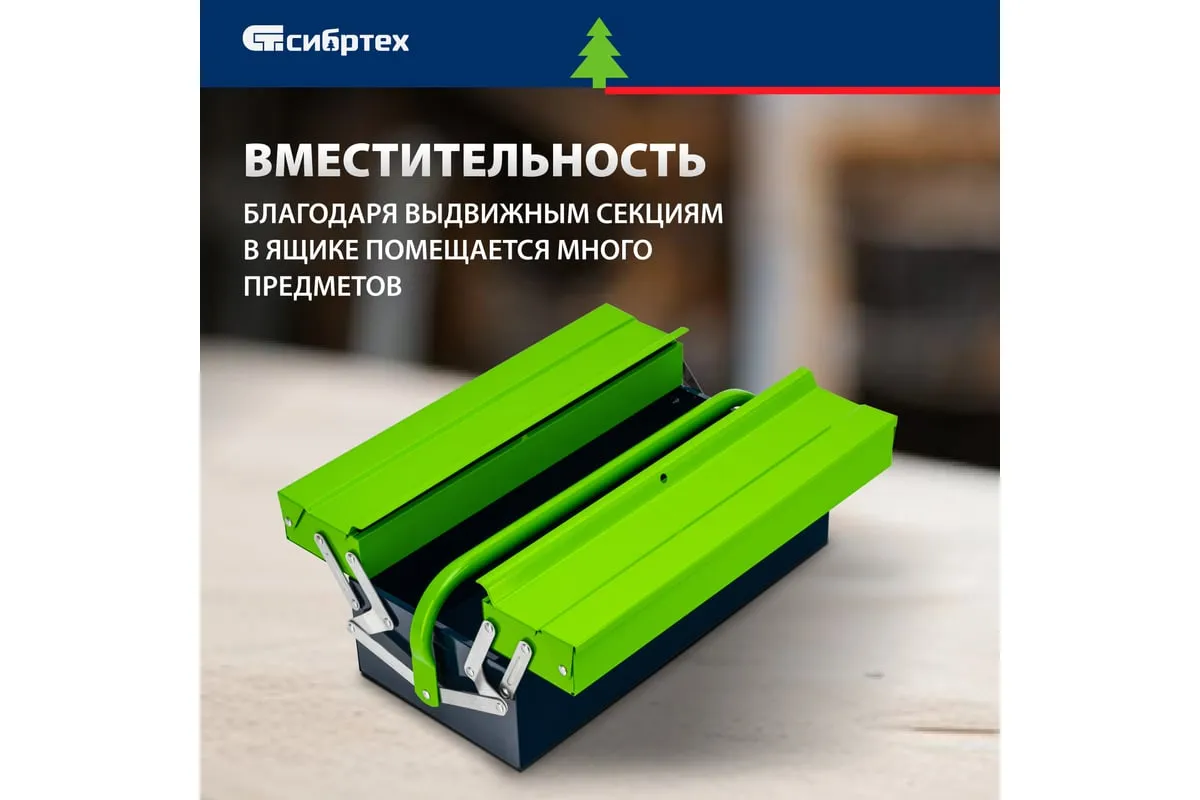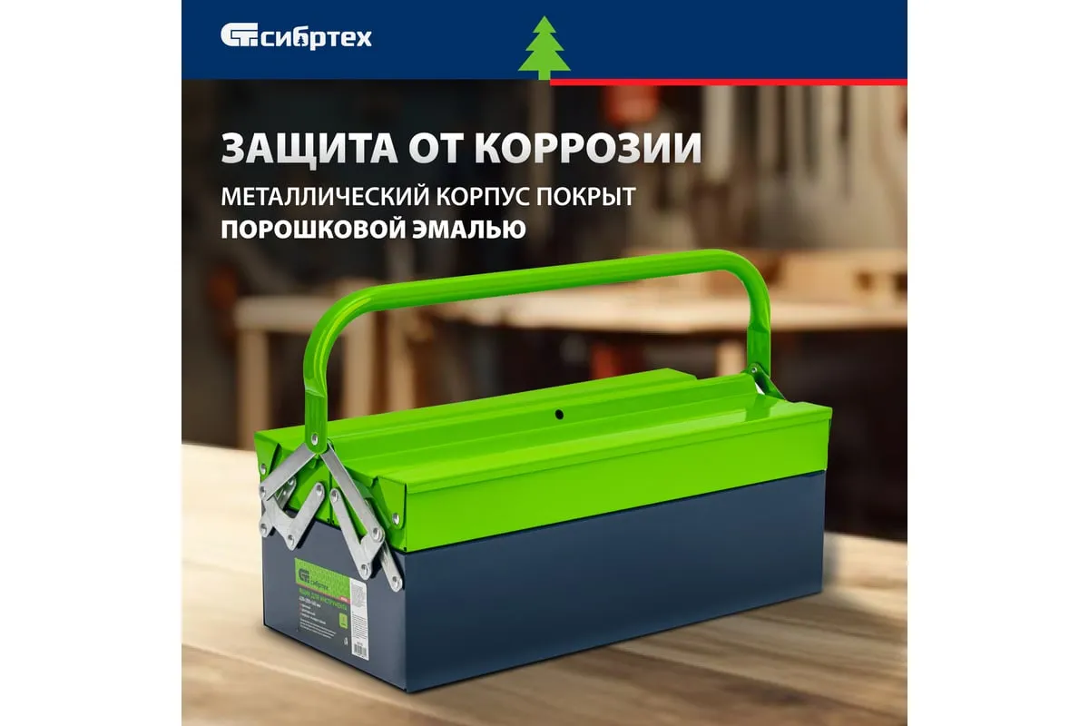 Металлический ящик Сибртех 90750, 430 х 200 х 160 мм, с тремя секциями, используется для размещения инструментов, хозяйственных мелочей, крепежных элементов или рыболовных принадлежностей. Предметы удобно раскладываются по отделениям, что обеспечивает порядок во время их хранения и транспортировки. Ящик пригодится в поездке, на рыбалке, а также дома, на даче или в гараже.