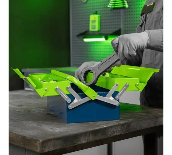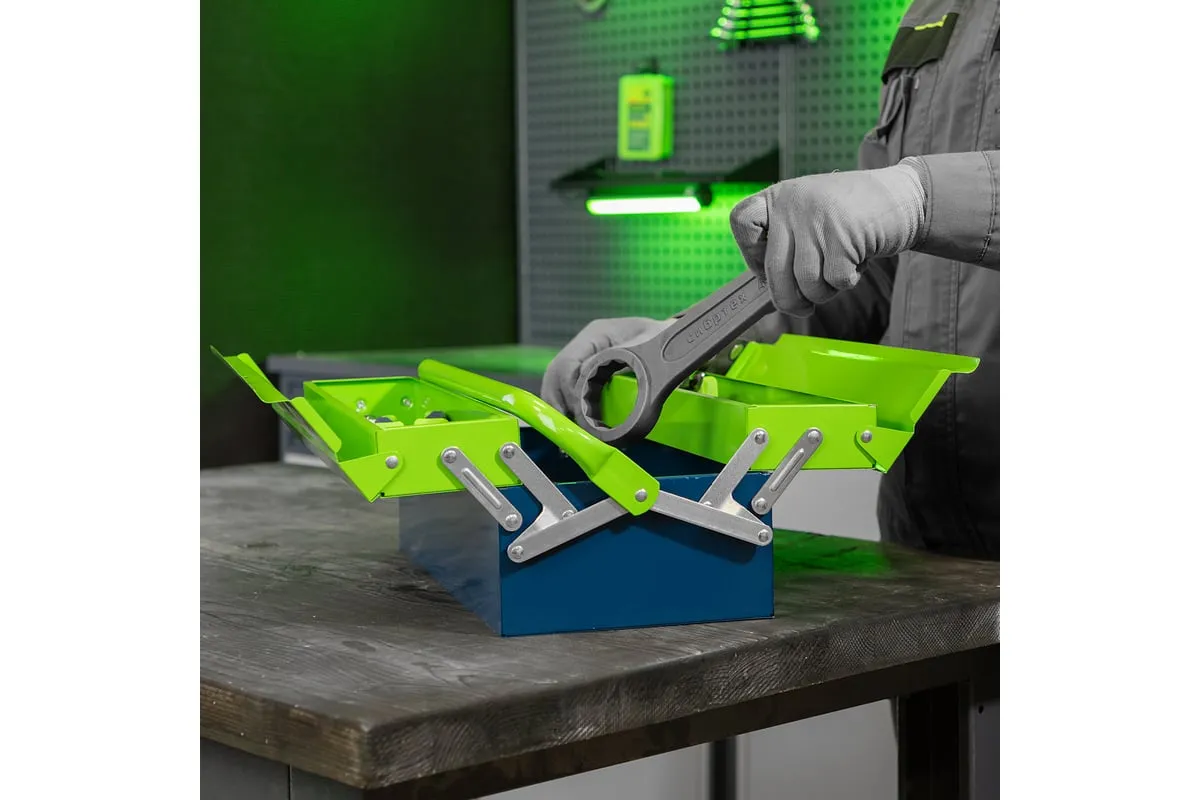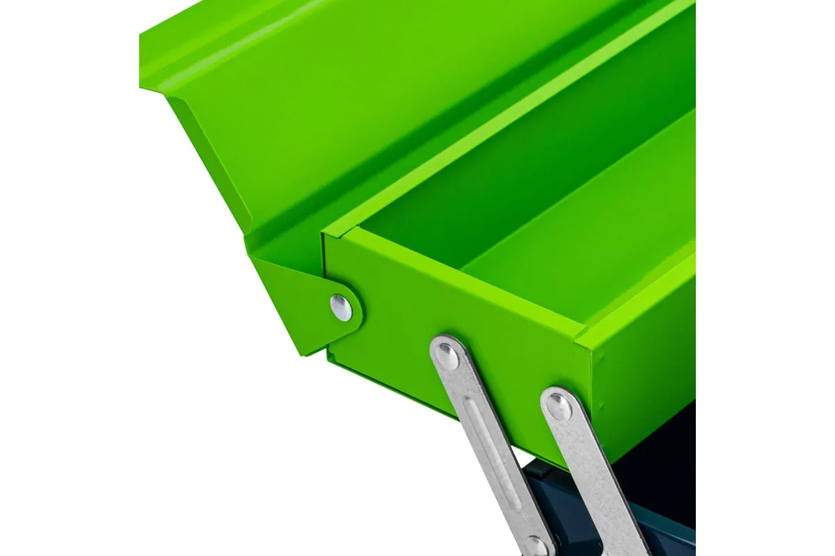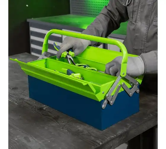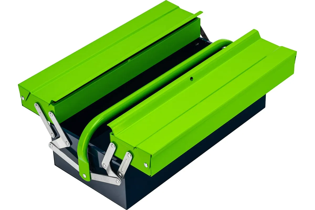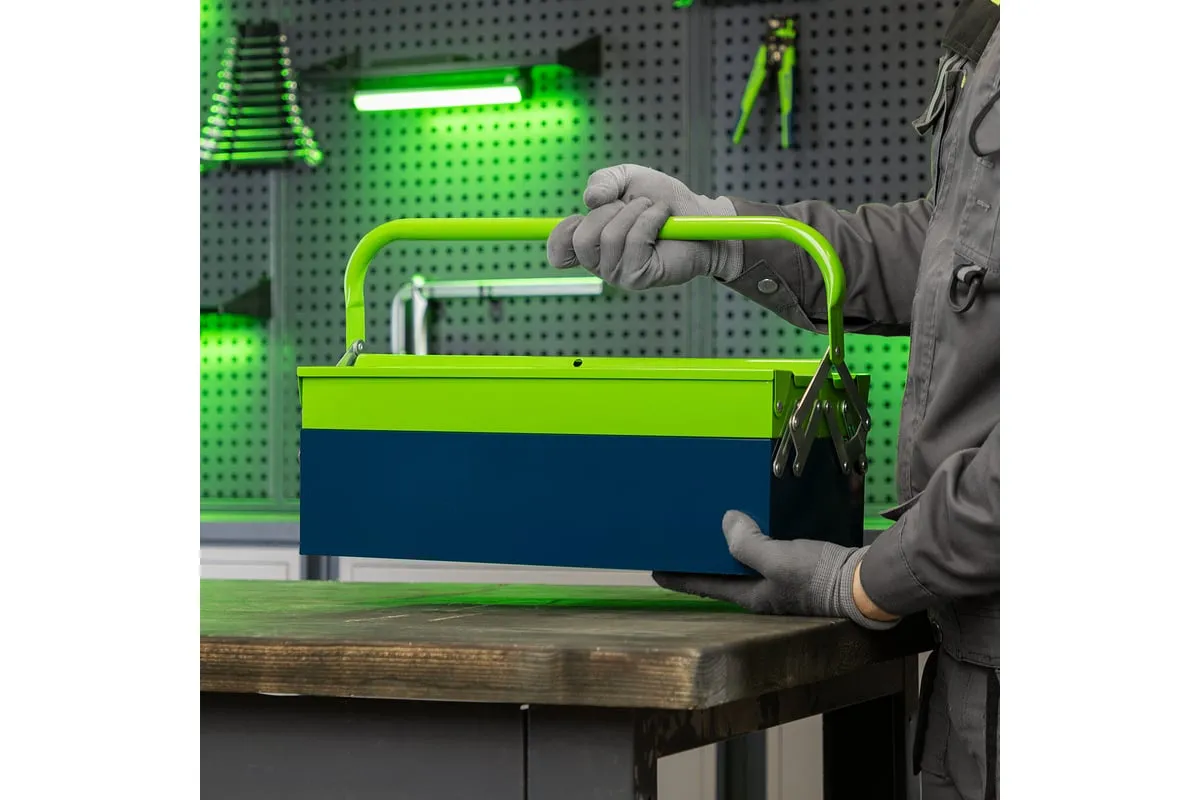 Металлический ящик Сибртех 90750, 430 х 200 х 160 мм, с тремя секциями, используется для размещения инструментов, хозяйственных мелочей, крепежных элементов или рыболовных принадлежностей. Предметы удобно раскладываются по отделениям, что обеспечивает порядок во время их хранения и транспортировки. Ящик пригодится в поездке, на рыбалке, а также дома, на даче или в гараже.