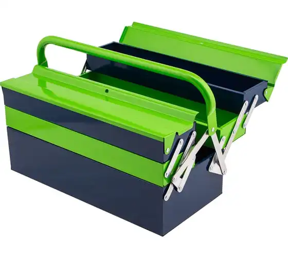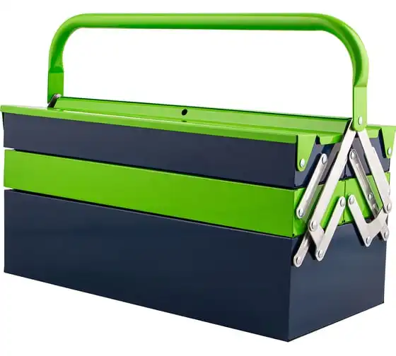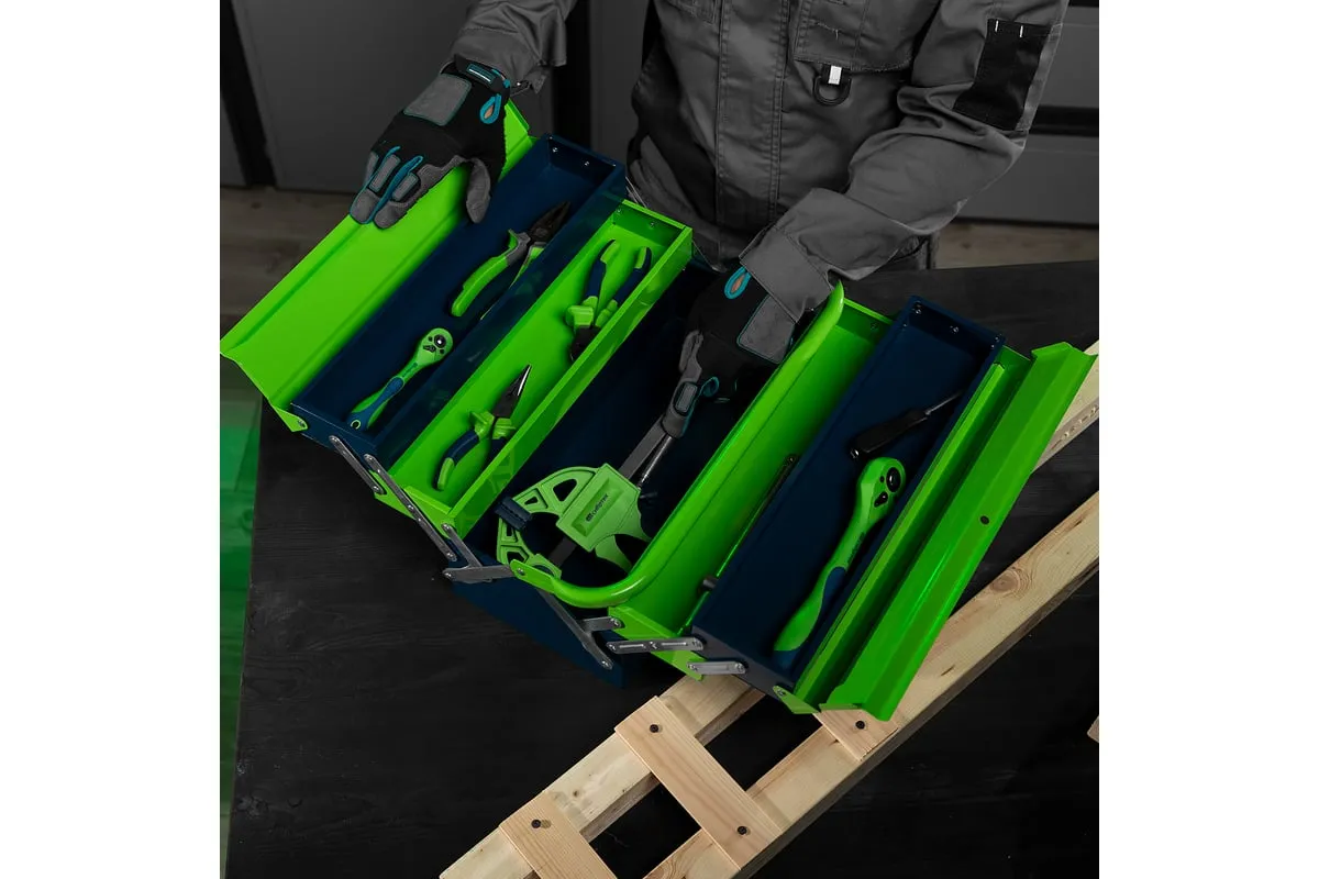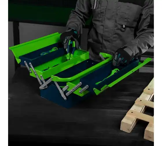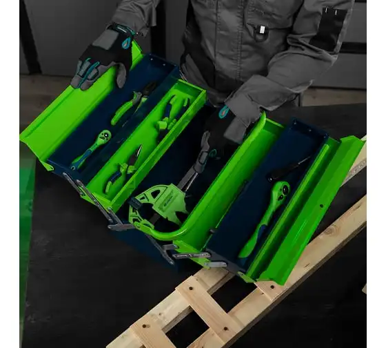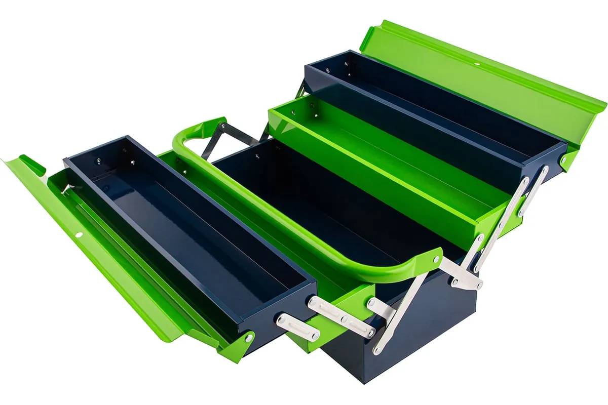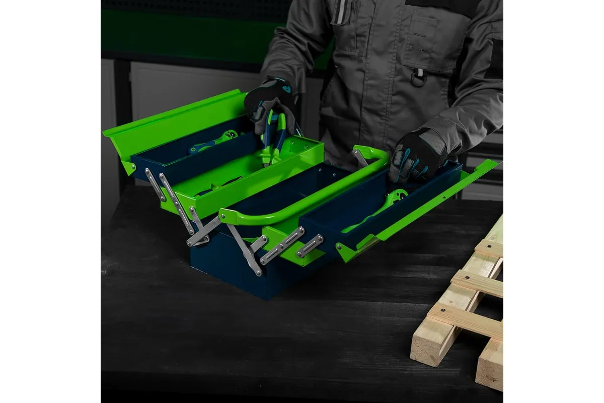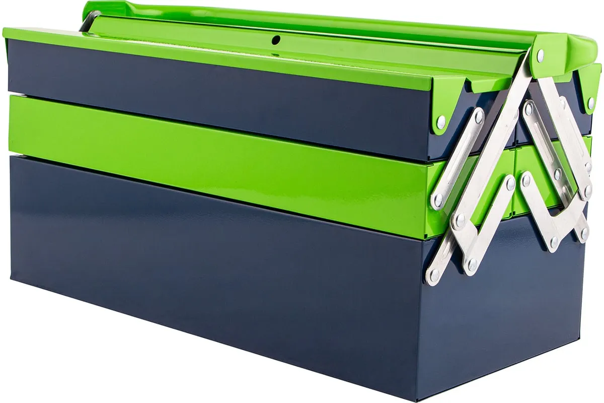 Металлический ящик Сибртех 90751 размером 430 х 200 х 200 мм, с пятью секциями, используется для размещения инструментов, хозяйственных мелочей, крепежных элементов или рыболовных принадлежностей. Предметы удобно раскладываются по отделениям, что обеспечивает порядок во время их хранения и транспортировки. Ящик пригодится в поездке, на рыбалке, а также дома, на даче или в гараже.