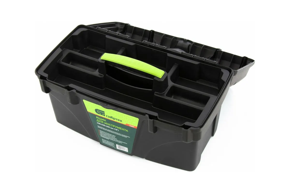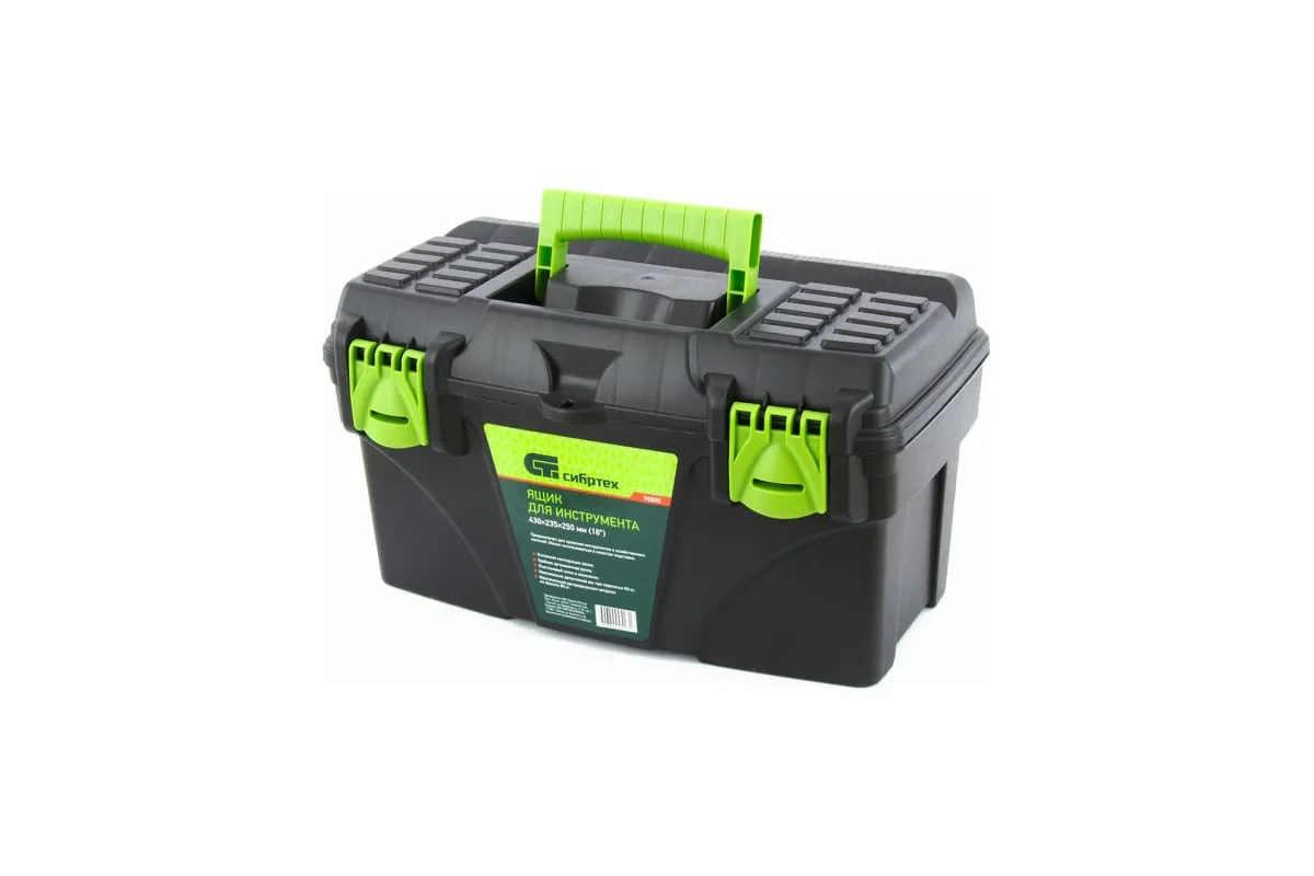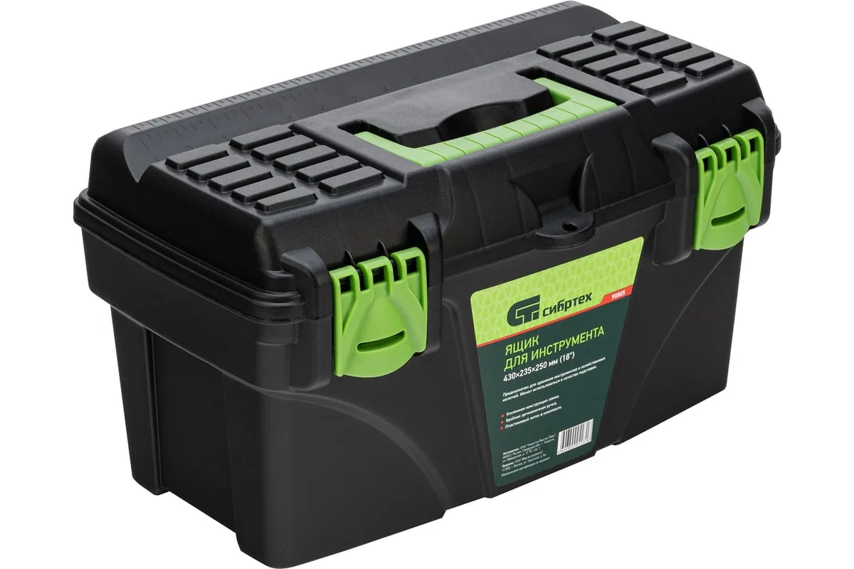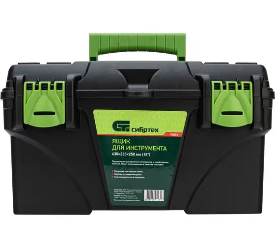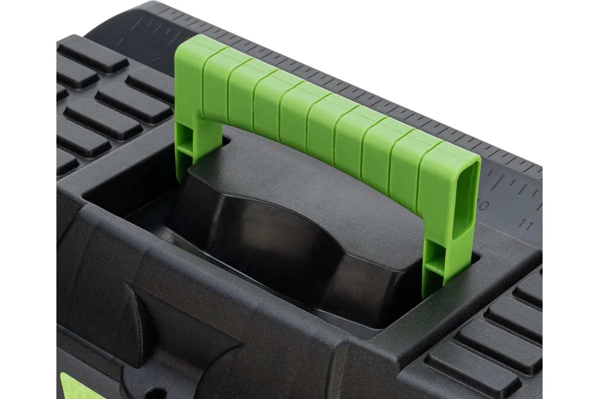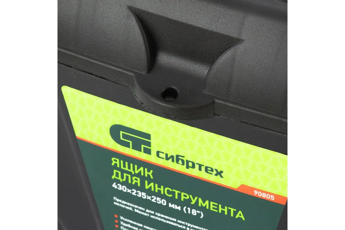Ящик для инструмента Сибртех 90805 из пластика, размером 430 х 235 х 250 мм (длина 18"), — удобное вместилище для инструментов, бытовых мелочей, рыболовных снастей. На крышку нанесена измерительная шкала в сантиметрах и дюймах, поэтому можно проводить измерения, даже если под рукой нет линейки. Ящик пригодится в поездке, на рыбалке, а также дома, на даче или в гараже.