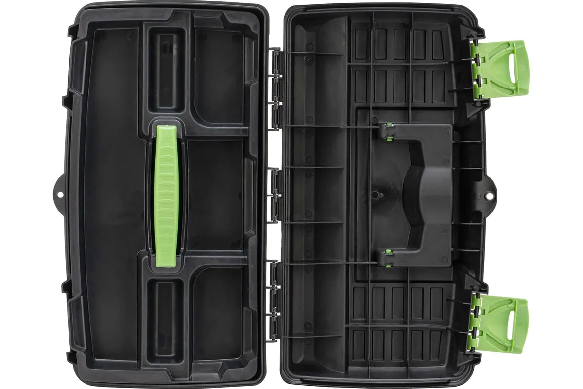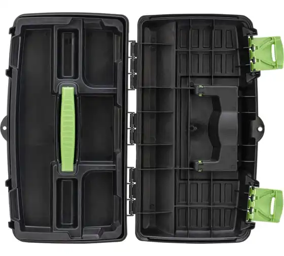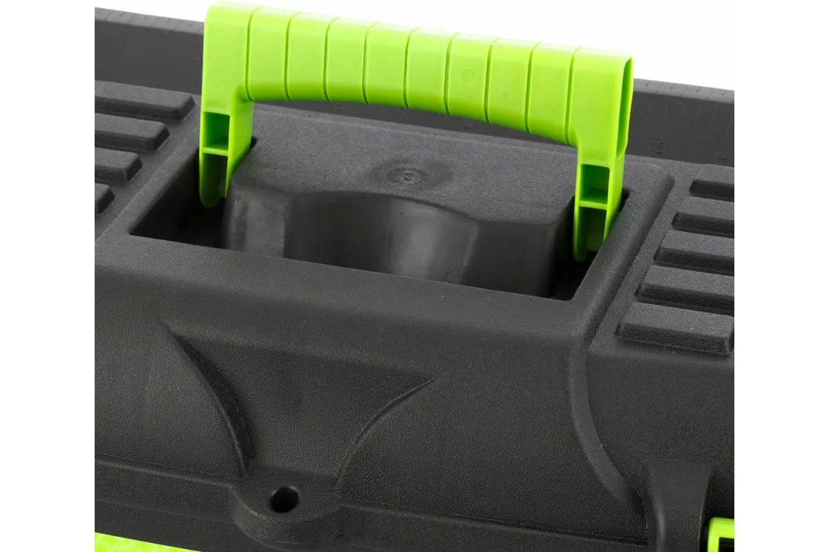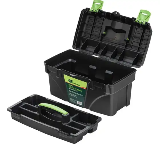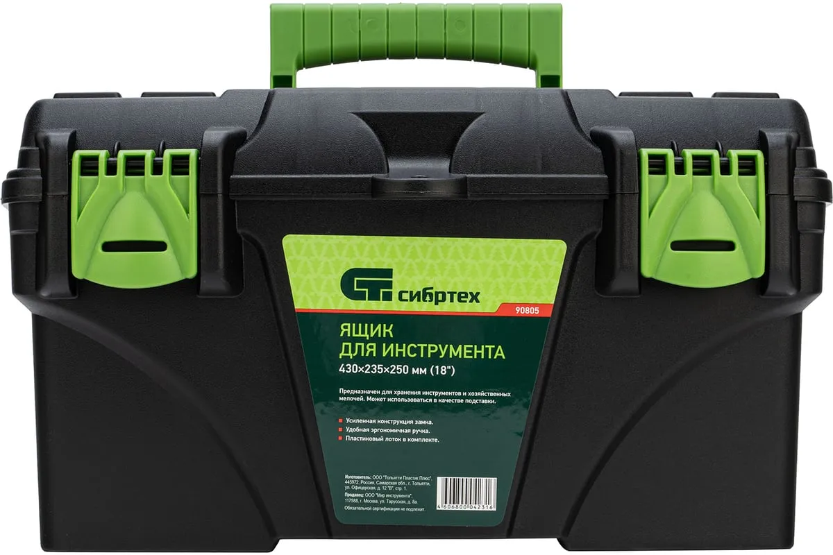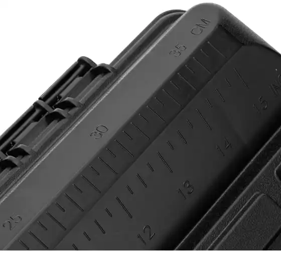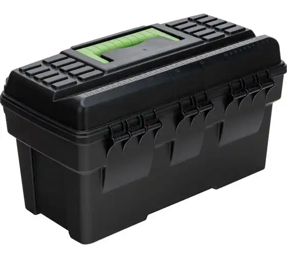 Ящик для инструмента Сибртех 90805 из пластика, размером 430 х 235 х 250 мм (длина 18"), — удобное вместилище для инструментов, бытовых мелочей, рыболовных снастей. На крышку нанесена измерительная шкала в сантиметрах и дюймах, поэтому можно проводить измерения, даже если под рукой нет линейки. Ящик пригодится в поездке, на рыбалке, а также дома, на даче или в гараже.