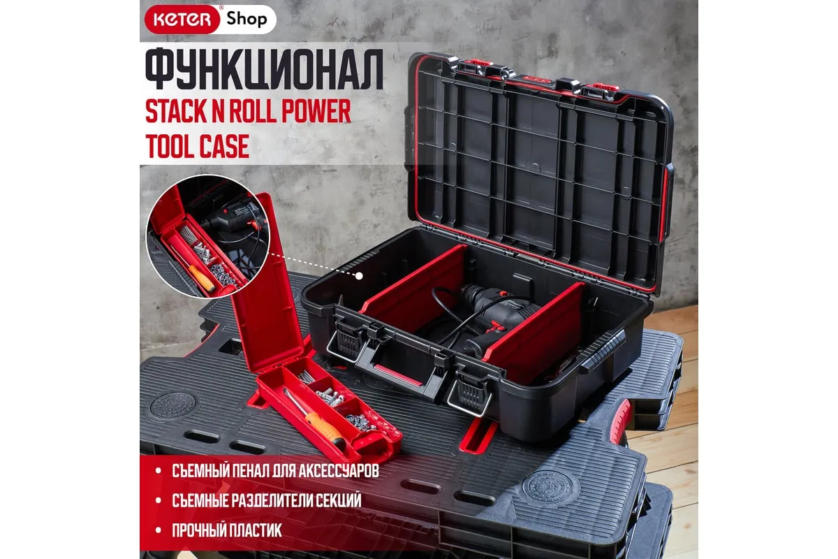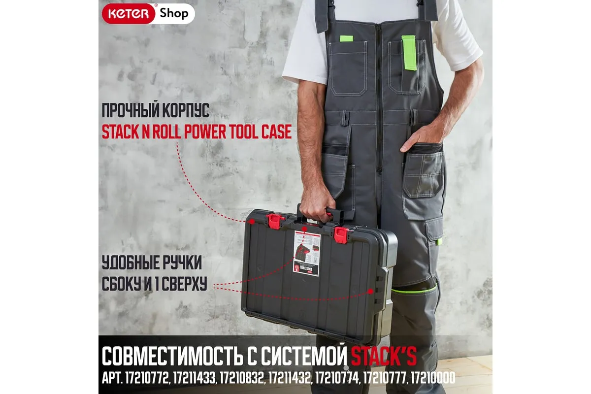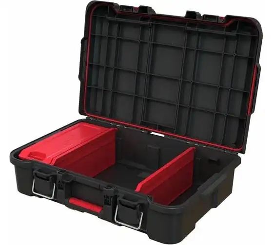 Ящик для инструментов Stack'N'Roll идеально подходит для хранения инструментов и аксессуаров. Благодаря специальной прокладке в крышке содержимое чемодана остается защищенным от внешних факторов. Чемодан для инструментов оснащен 2 съемными отсеками и небольшим органайзером для мелких деталей, который можно установить внутри или положить на крышку чемодана. Ручка с мягкой резиновой накладкой обеспечивает удобство при переноске, а боковые ручки позволяют удобно поднимать и перемещать ящик в другое место. Благодаря инновационной системе креплений, ящик полностью совместим с другими модулями серии Stack'N'Roll. Максимальная нагрузка 10 кг