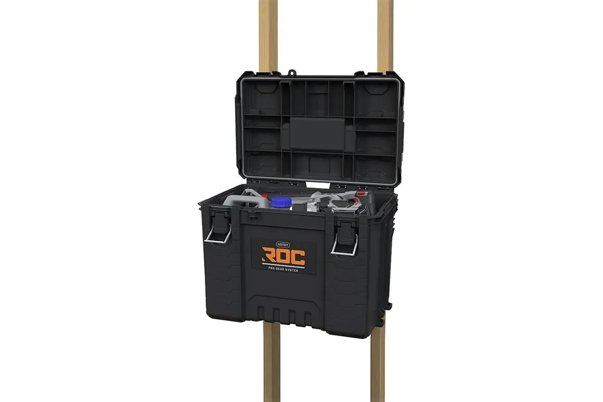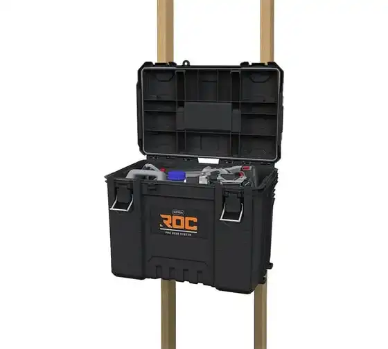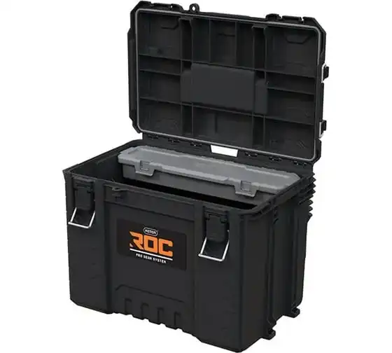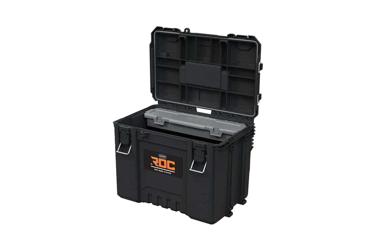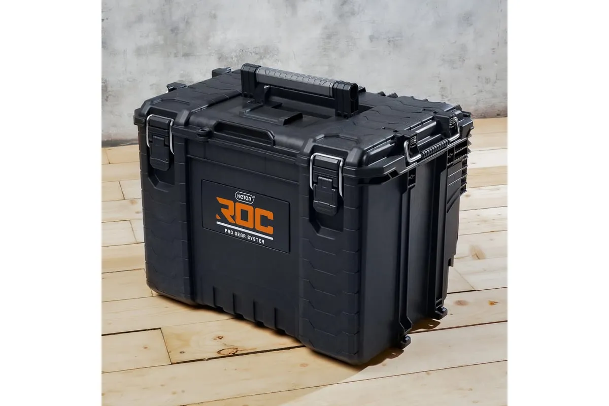 НОВИНКА ОТ KETER! Профессиональный ящик для инструментов XL ROC Pro Gear 2.0 - это специальное решение для хранения инструментов больших размеров. Его специально профилированная крышка позволяет прикреплять половинные модули, а прочные защелки обеспечивают надежное закрытие, гарантируя безопасность при транспортировке. Коробка оснащена держателями Pro Mount L для настенного крепления для легкого доступа к инструментам, а также съемным органайзером для аксессуаров с крышкой. Изготовленная из высококачественного пластика и правильно герметизированная, коробка гарантирует эксплуатационную прочность в самых требовательных условиях. Функциональная система соединения ящиков с боковыми креплениями обеспечивает полную совместимость со всеми ящиками линейки Pro Gear 1.0 и ROC Pro Gear 2.0, что позволяет гибко адаптировать систему хранения инструментов к индивидуальным потребностям. Настройте свою собственную профессиональную систему хранения инструментов с ROC Pro Gear!