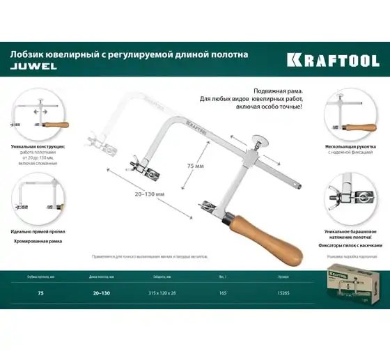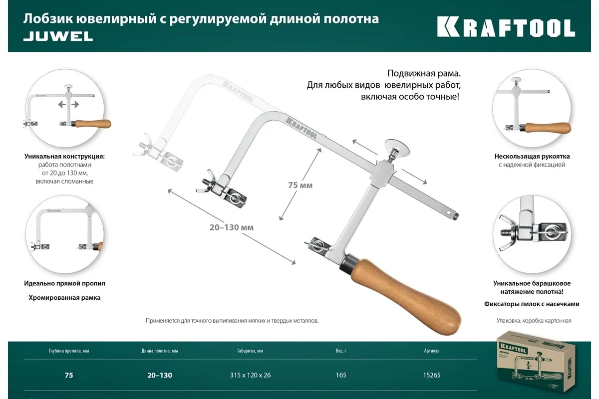 Ювелирный лобзик - профессиональный ювелирный инструмент для особо точных работ. Подходит для полотен различной длины, включая сломанные 0-130 мм. Применяется для выпиливания мягких и твердых металлов.