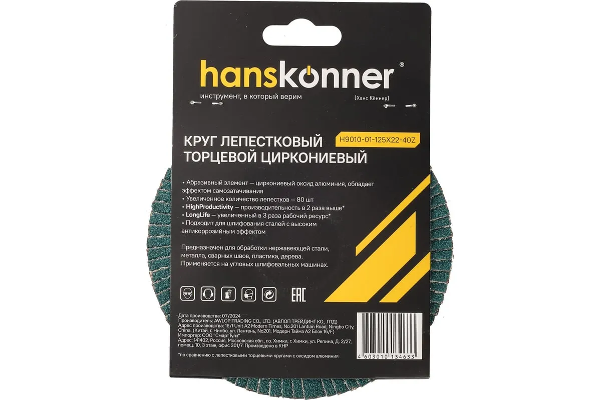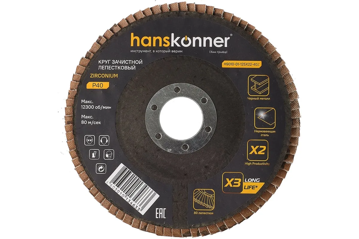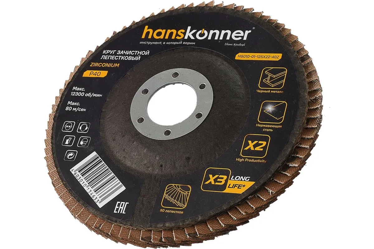 Абразивный элемент -циркониевый оксид алюминия, обладает эффектом самозатачивания. Увеличенное количество лепестков - 80 шт. HighProductivity- производительность в 2 раза выше* LongLife -увеличенный в 3 раза рабочий ресурс*