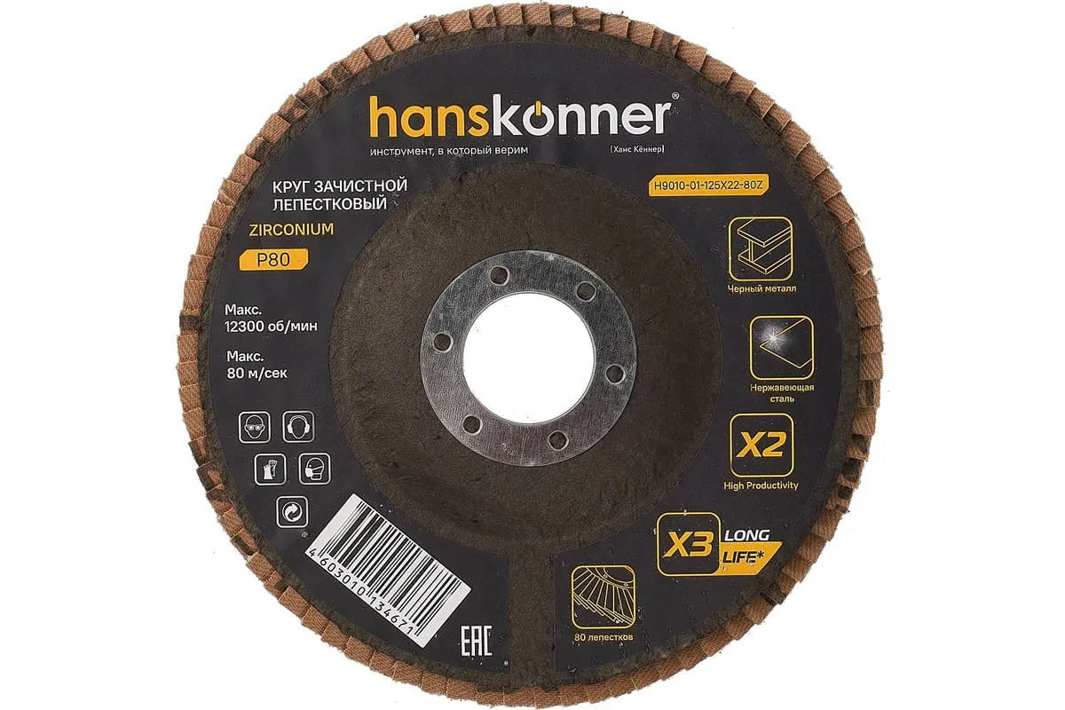 Абразивный элемент- циркониевый оксид алюминия, обладает эффектом самозатачивания. Увеличенное количество лепестков - 80 шт. HighProductivity- производительность в 2 раза выше* LongLife- увеличенный в 3 раза рабочий ресурс*