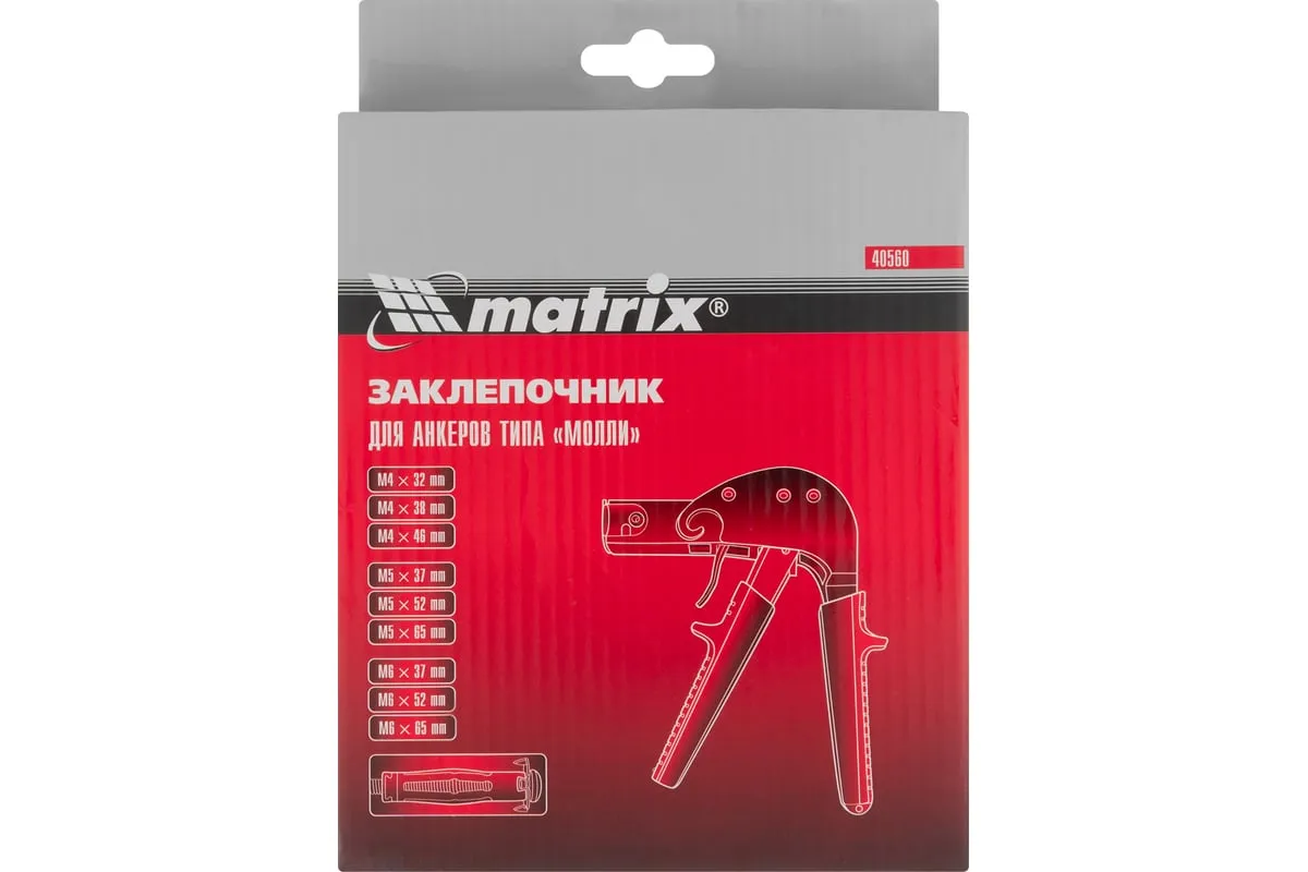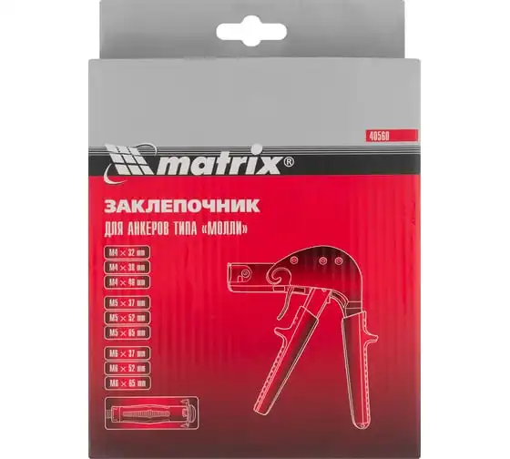 Заклепочник Matrix 40560 — крепежный инструмент, предназначенный для установки анкеров типа «Молли» в пустотелые конструкции. Инструмент подходит для профессионального и бытового применения.