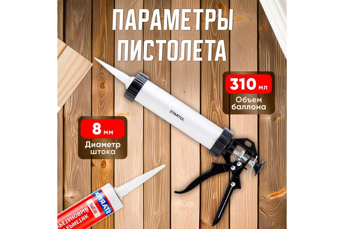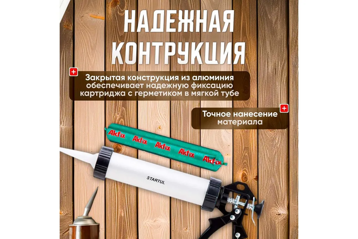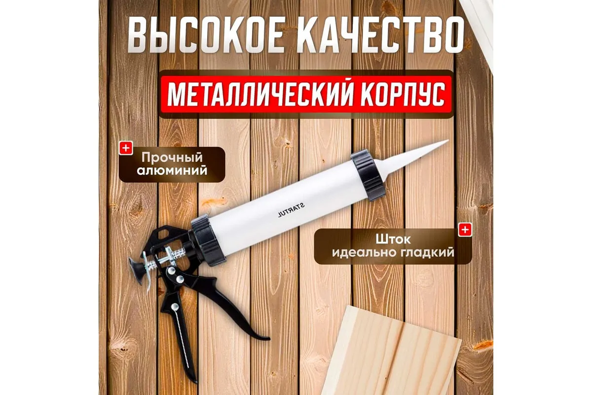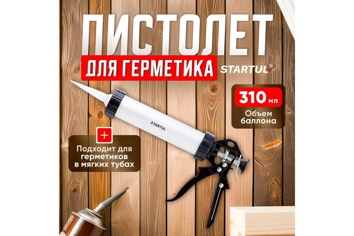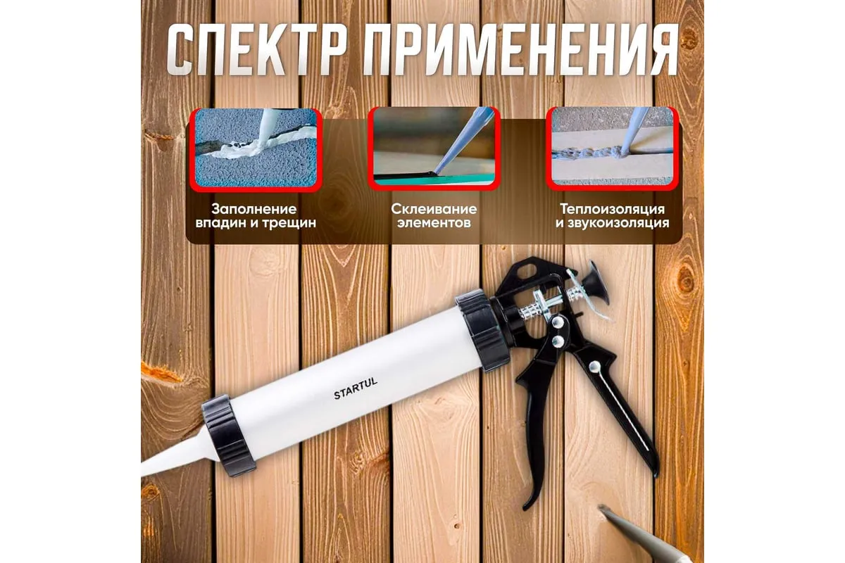 Закрытый пистолет для герметика STARTUL Master 310 мл ST4060-30 предназначен для выдавливания герметика из мягких туб и его нанесения в целях изоляции, фиксации и заполнения пустот.