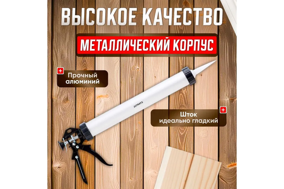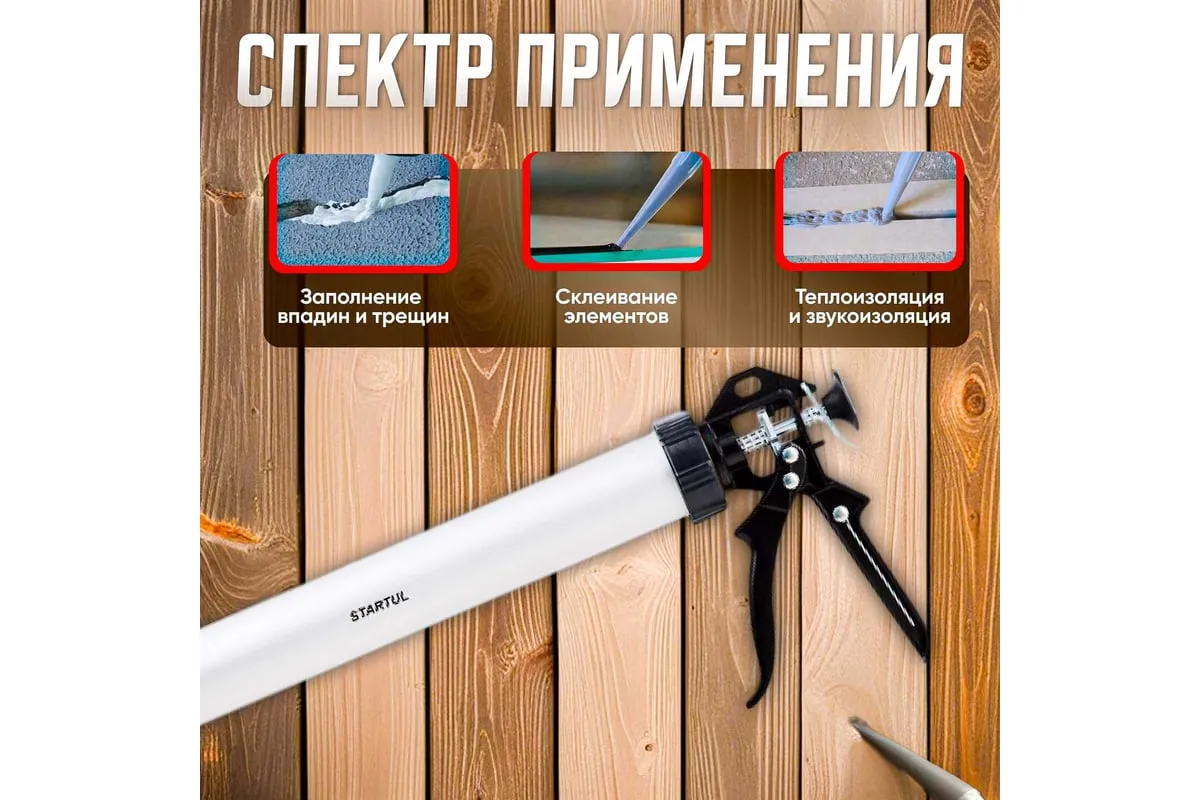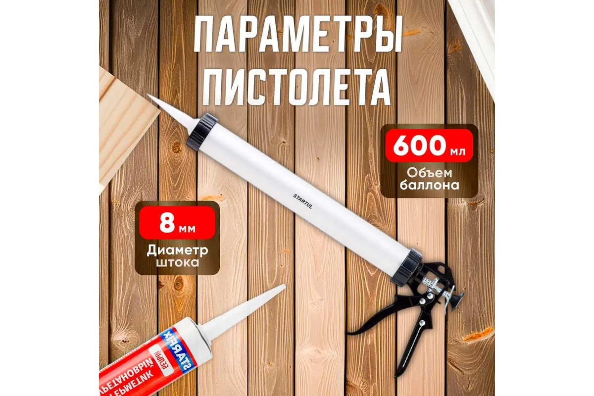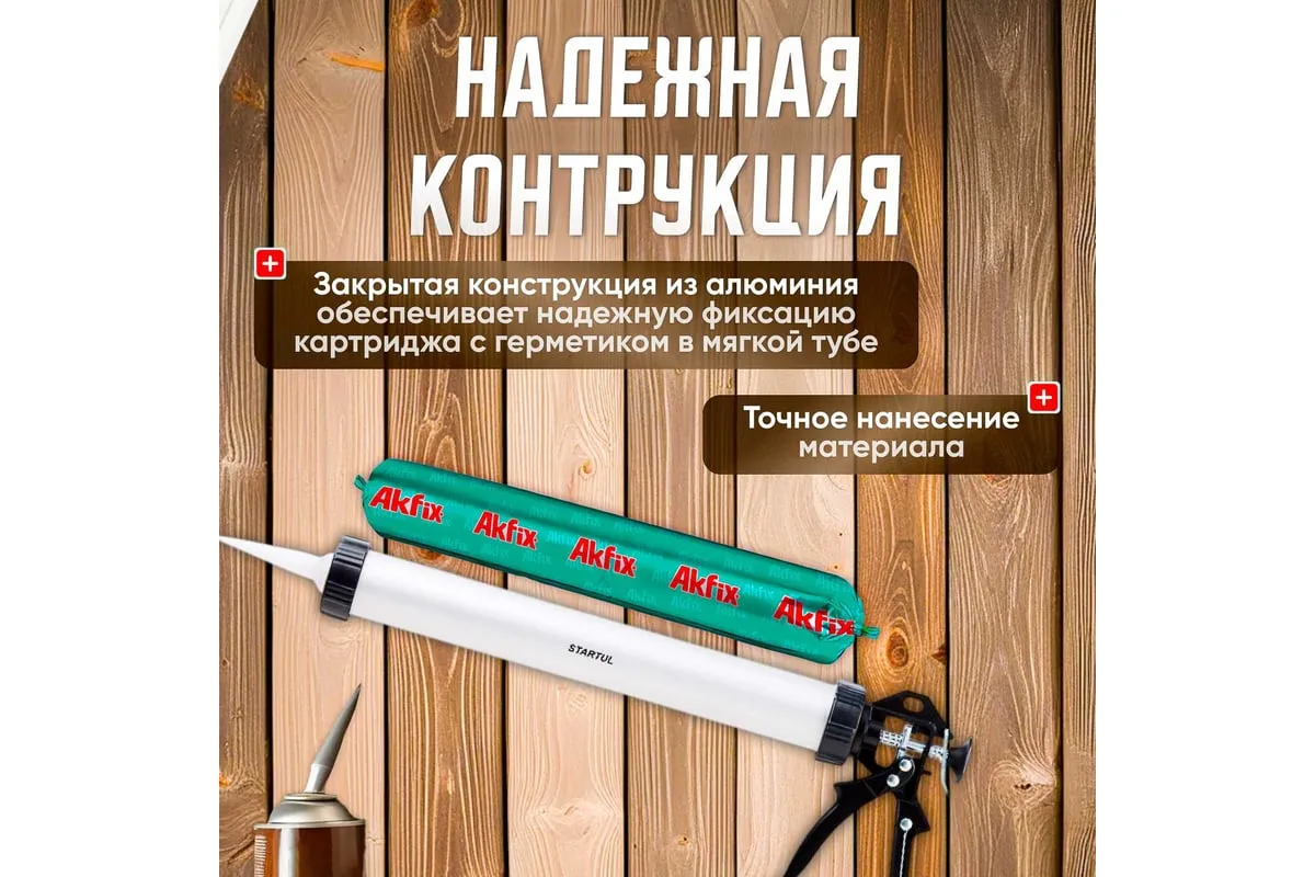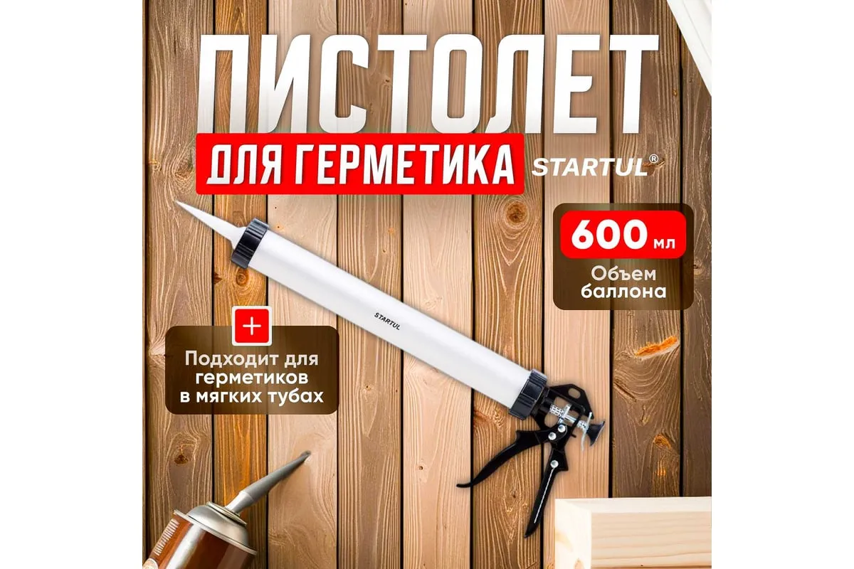 Закрытый пистолет для герметика STARTUL Master ST4060-60 предназначен для выдавливания герметика из мягких туб и его нанесения в целях изоляции, фиксации и заполнения пустот.