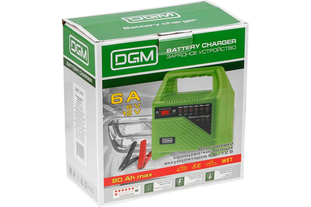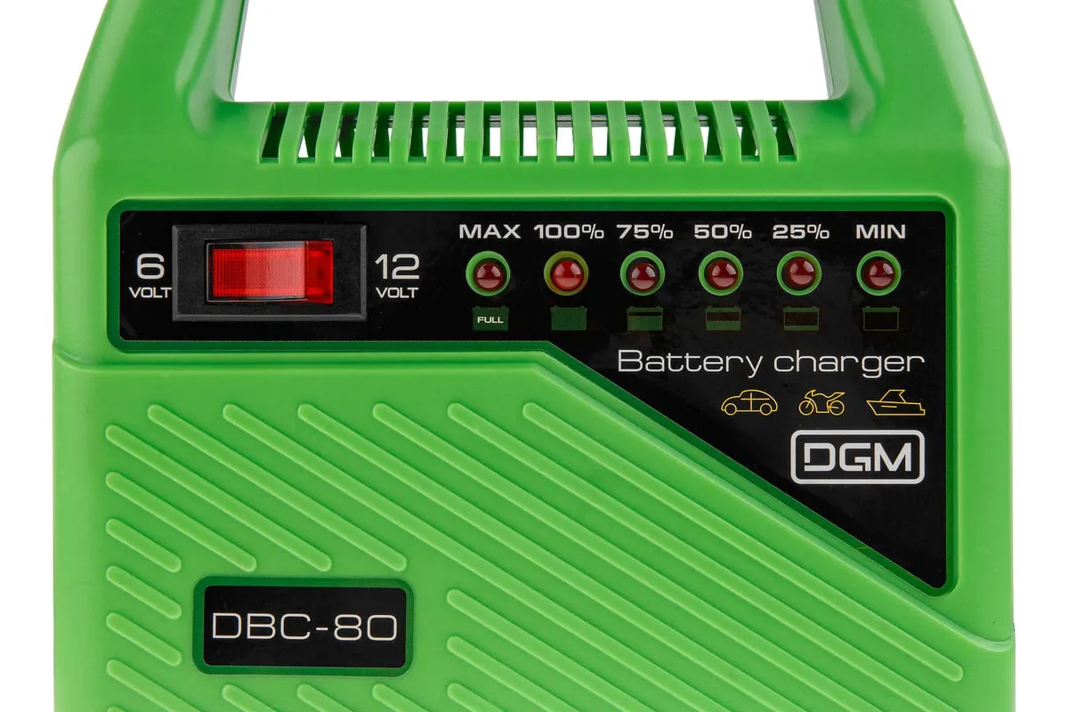 Зарядное устройство DGM DBC-80 предназначено для зарядки/подзарядки аккумуляторных батарей. Доп. характеристики: