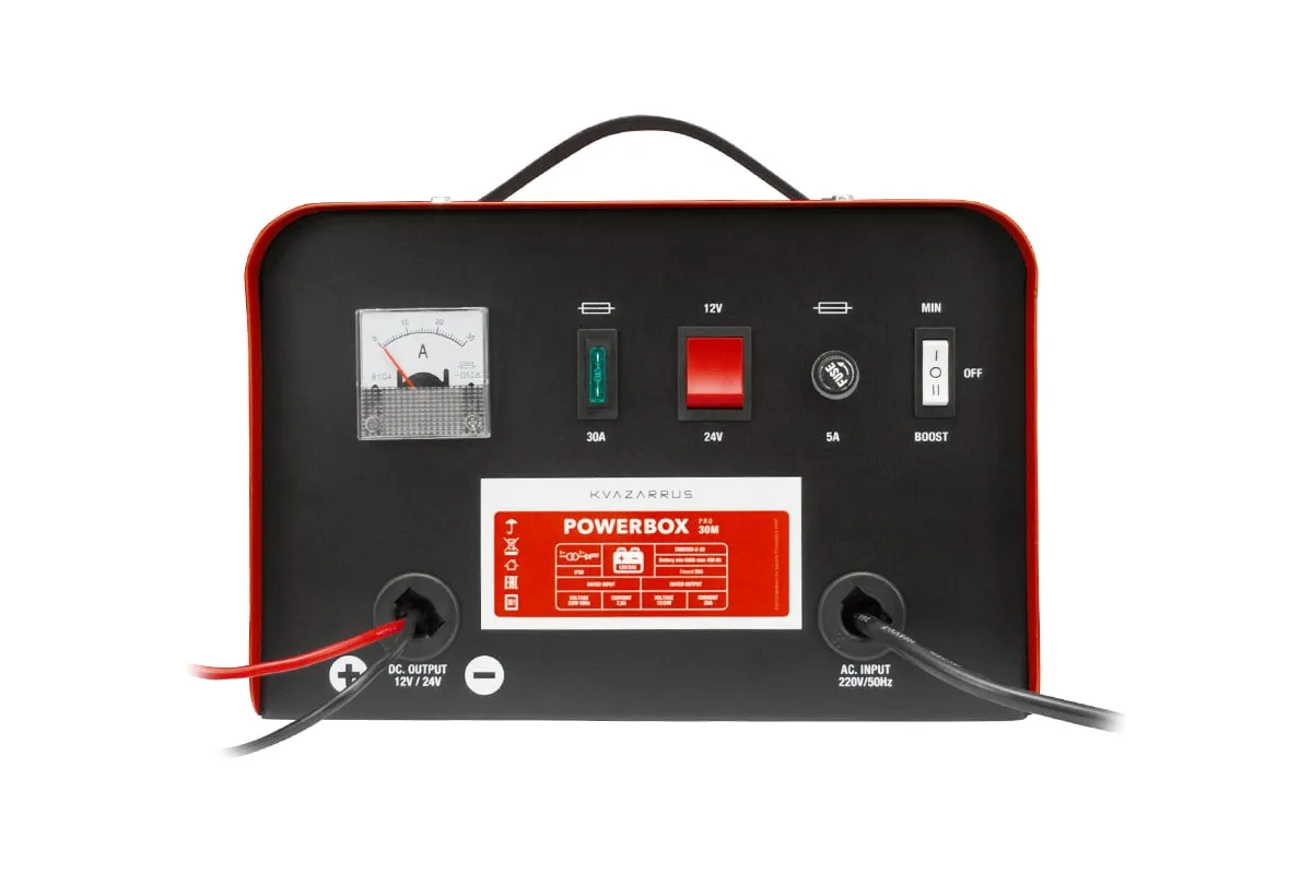 Зарядное устройство KVAZARRUS PowerBox 30M 6495 подходит для профессиональной эксплуатации. Предназначена для зарядки свинцово-кислотных аккумуляторных батарей, которые используются на дизельных и бензиновых двигателях, мотоциклах, моторных лодках.
