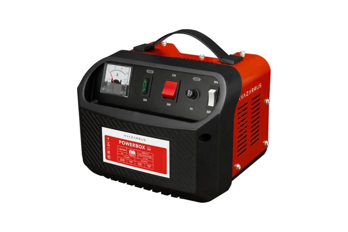 Зарядное устройство KVAZARRUS PowerBox 30P 6489 предназначено для зарядки свинцово-кислотных аккумуляторных батарей, которые используются на дизельных и бензиновых двигателях, мотоциклах, моторных лодках.