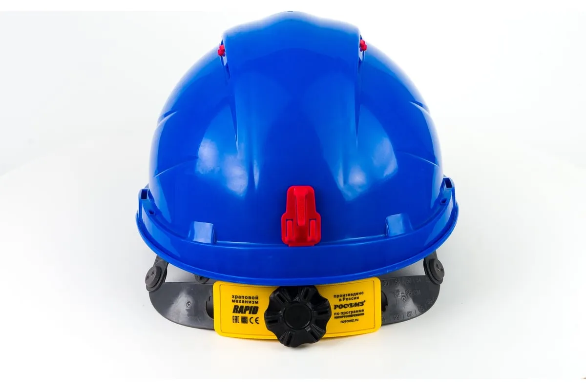 Стильная, удобная каска. Защищает голову пользователя от повреждений падающими предметами, от воздействия влаги, брызг металла, химических веществ. Имеются пазы (слоты) для крепления наушников и щитков, держатель SMART для фиксации наголовной ленты защитных закрытых очков. Корпус каски изготовлен из полипропилена с несмываемой маркировкой защитных свойств на козырьке каски. Имеется ребро жёсткости. Вентиляционные отверстия регулируются заглушками, которые являются УФ-индикаторами старения. Внутренняя оснастка с текстильными амортизационными лентами крепится к корпусу в 8-ми точках. Шесть ступней регулировки высоты ношения. Регулировка по размеру головы осуществляется плавно храповым механизмом RAPID. Cменная мягкая налобная лента (обтюратор) из триплированного материала. 2-х точечный текстильный подбородочный ремень с зацепом-ловителем, поставляемый в комплекте, позволяет надежно фиксировать каску на голове пользователя и крепится к корпусу каски.