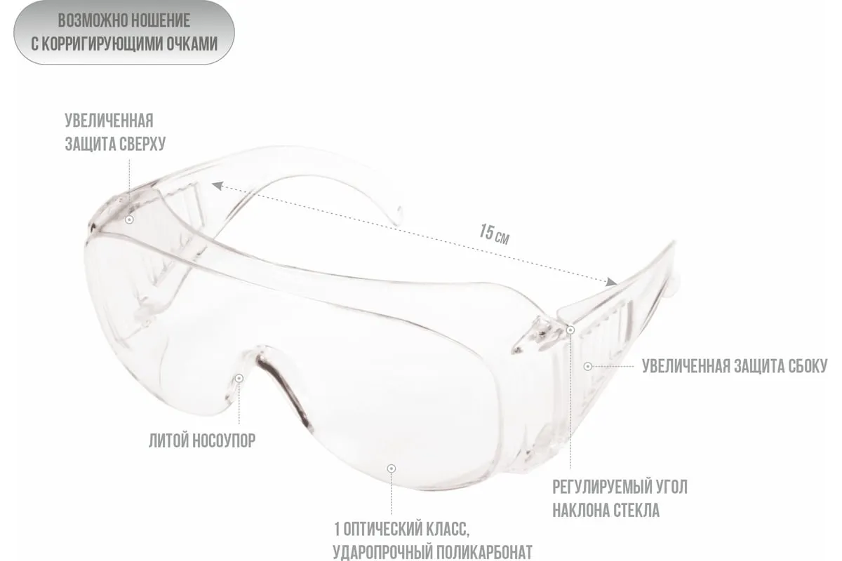 Защитные открытые очки РОСОМЗ О35 ВИЗИОН PC 13511 — модель с панорамным защитным стеклом увеличенного размера. Изготовлены из ударопрочного поликарбоната 1 оптического класса, обеспечивая высокую прозрачность защитных стекол и отсутствие искажений. Защитное стекло покрыто с двух сторон специальным сверхтвердым водостойким оптическим покрытием АБСОЛЮТ, обеспечивая защиту от высокоскоростных частиц с низкоэнергетическим ударом, УФ-излучения в производственных помещениях и на открытых площадках, капель жидкостей и оптического излучения. Широкий заушник, увеличенная форма корпуса и регулируемый угол наклона защитного стекла обеспечивают панорамный обзор, увеличенную защиту и возможность совместного ношения с корригирующими очками. Литой носоупор анатомической формы обеспечит комфортную посадку на лице пользователя.