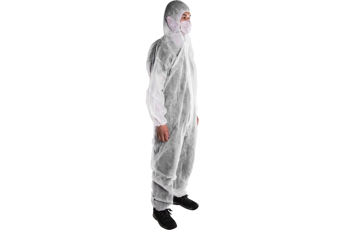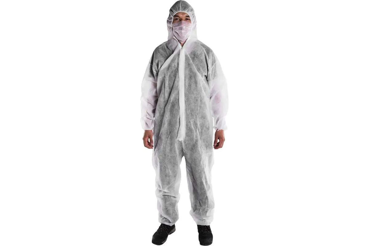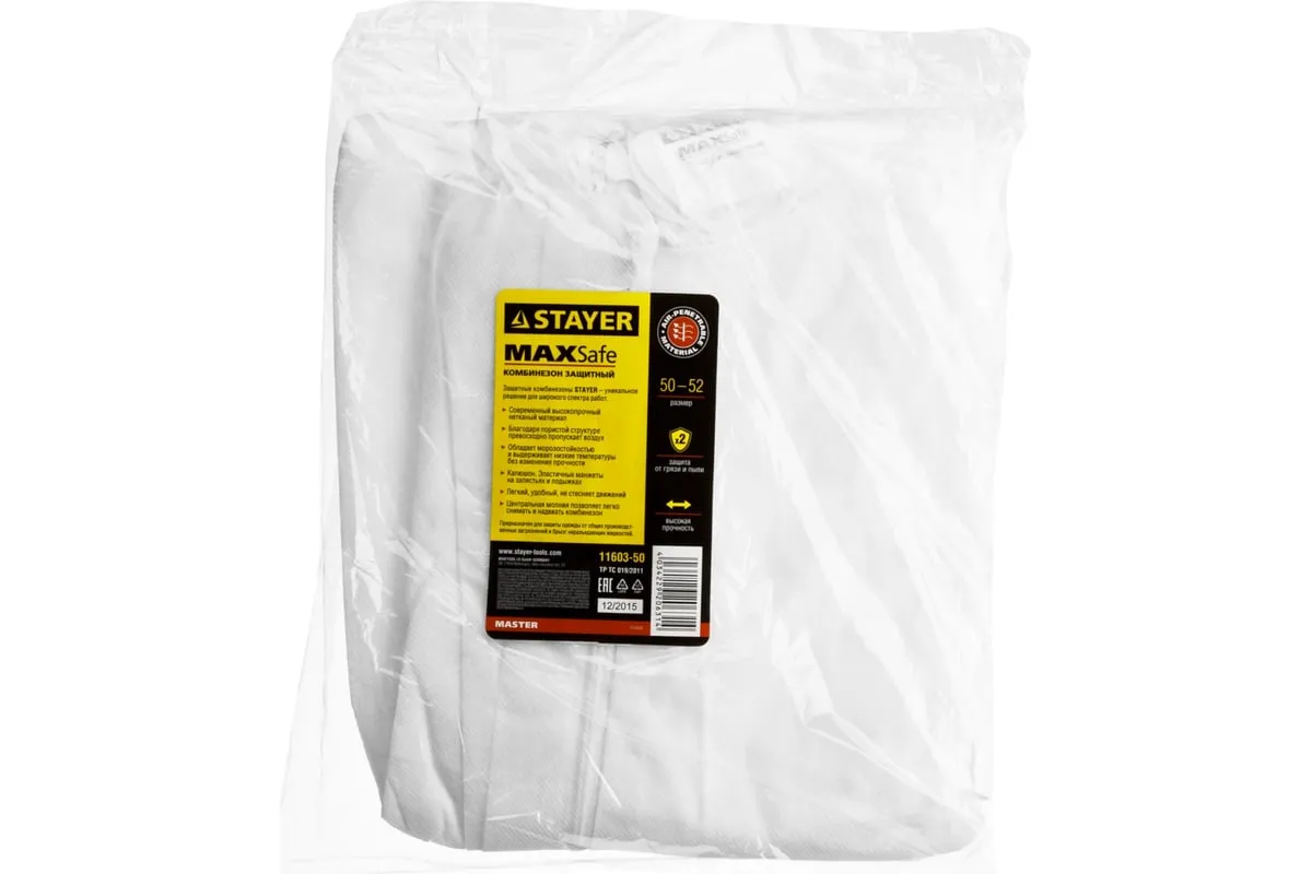 Защитный комбинезон из спанбонда STAYER MASTER р. 50-52 11603-50 защищает одежду от общих производственных загрязнений и брызг не разъедающих жидкостей.