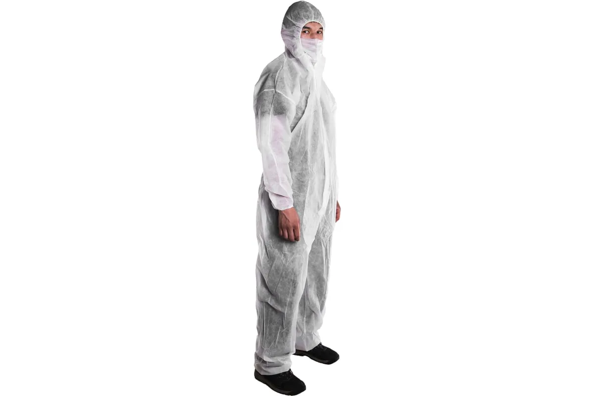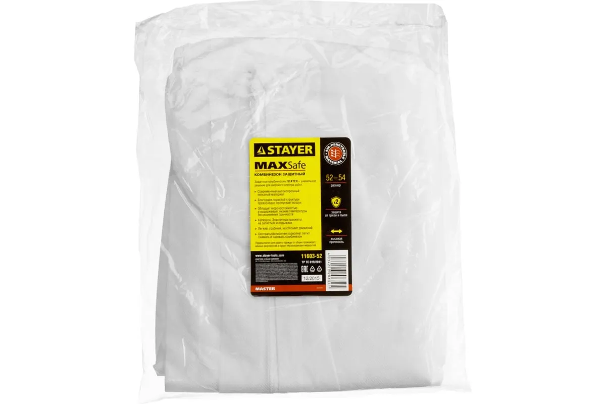 Защитный комбинезон из спанбонда STAYER MASTER р. 52-54 11603-52 защищает одежду от общих производственных загрязнений и брызг не разъедающих жидкостей.