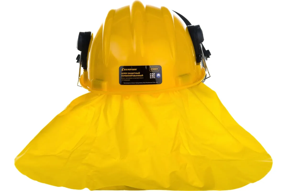 Защитный комбинированный шлем Champion C1001 предназначен для защиты от механических повреждений и производственного шума.