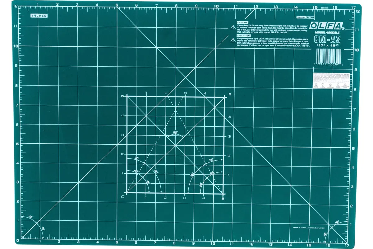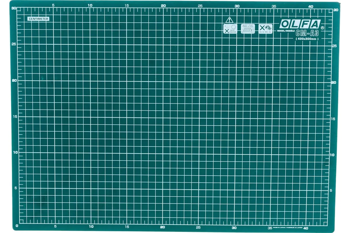 Универсальный двусторонний коврик OLFA CM-A3 — отличное решение для повышения эффективности реза. Приспособление имеет метрическую сетку с одной стороны и дюймовую с другой для удобства в работе. Предназначен для использования со стандартными, художественными, дисковыми и специальными ножами OLFA. Коврик необходимо хранить на ровной поверхности для предотвращения деформации.