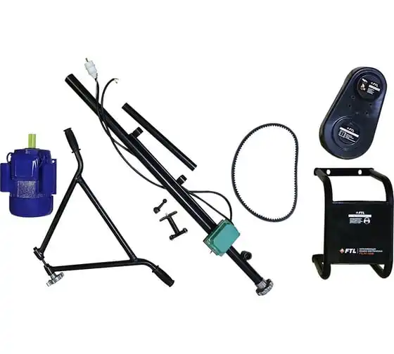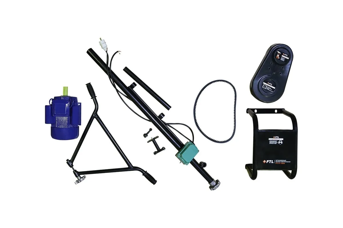 Затирочная электрическая машина FTL PT-1000E 7992 служит для чистовой обработки бетонных поверхностей, управляемую идущим сзади оператором. Затирочная машина состоит из рамы, на которой установлены электродвигатель, редуктор и рукоятка управления. К редуктору присоединен комплект из четырех металлических лопастей, окруженных кольцевым ограждением. Двигатель передает вращение на лопасти через редуктор и механизм сцепления. Вращающиеся лопасти перемещаются по поверхности затвердевающего бетона, создавая гладкую поверхность. Оператор идет позади агрегата и с помощью рукоятки управляет направлением движения. Данный агрегат предназначен для затирки и полировки затвердевающих бетонных поверхностей.