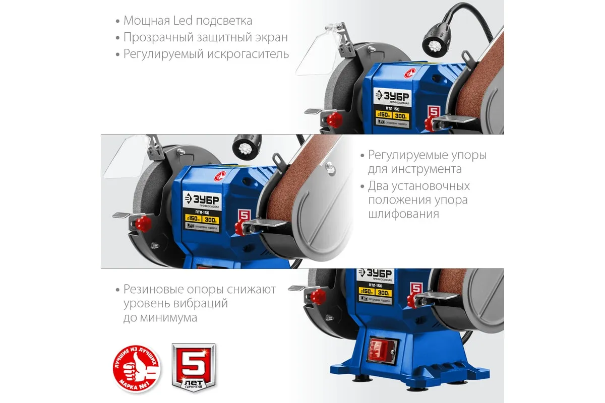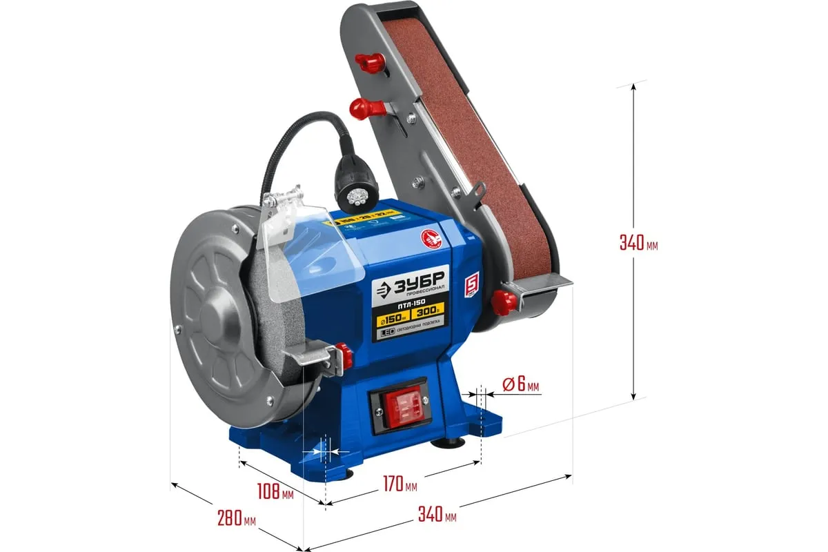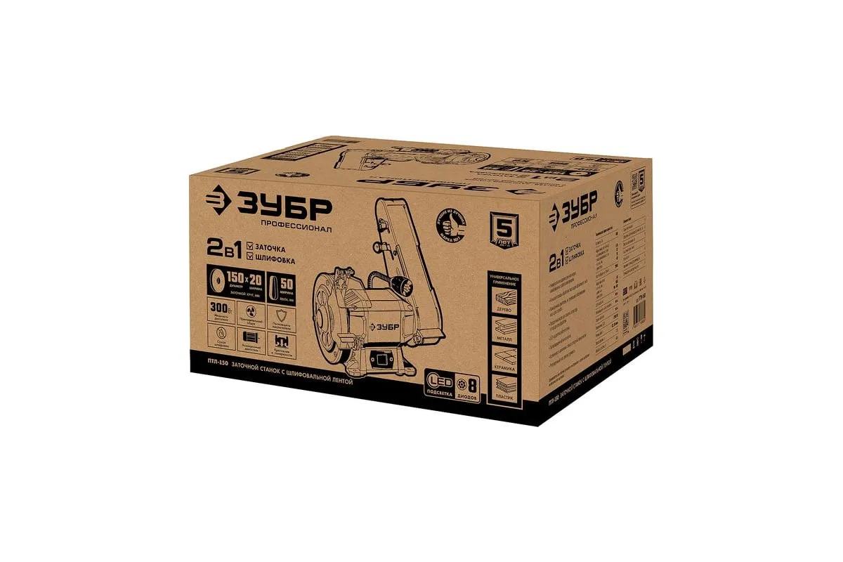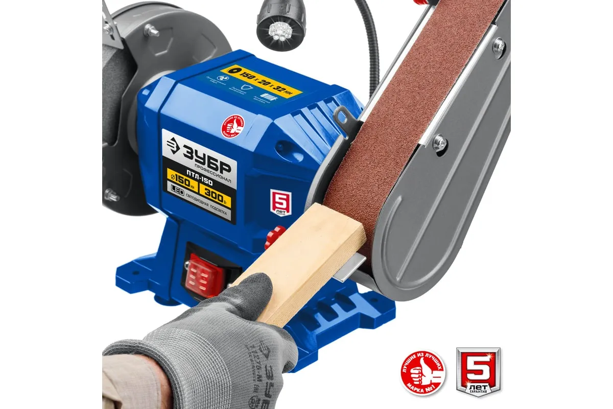 Заточной станок с шлифовальной лентой ЗУБР d 150 мм ПТЛ-150 используется для заточки и шлифовки инструмента и металлических заготовок. Устройство подходит для эксплуатации в мастерской и на небольшом производстве. Данная модель имеет большой ресурс двигателя. Отличается надежным исполнением.