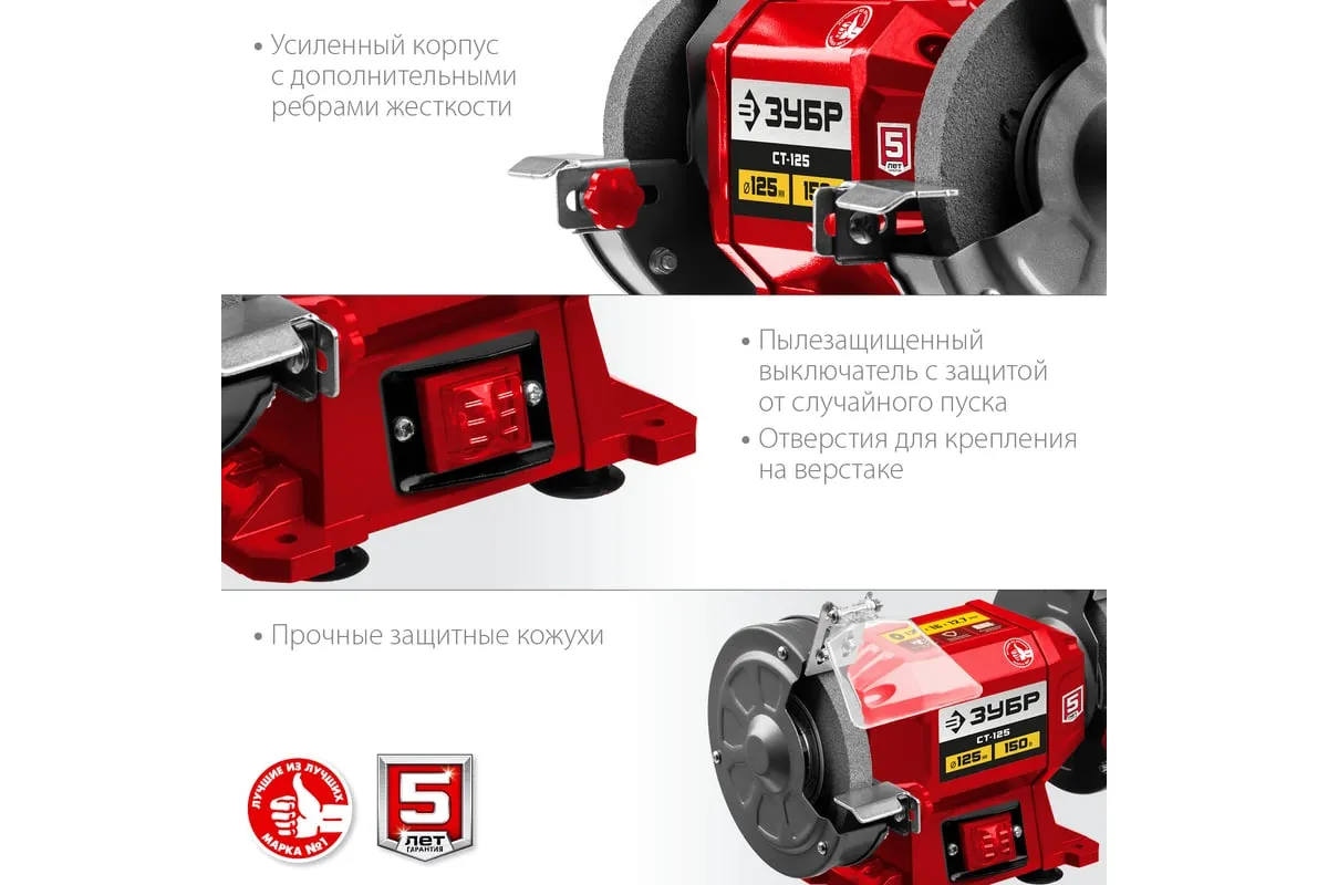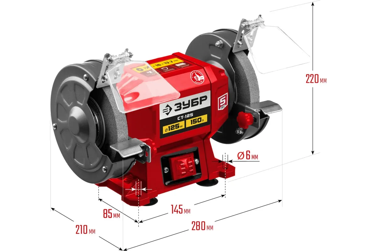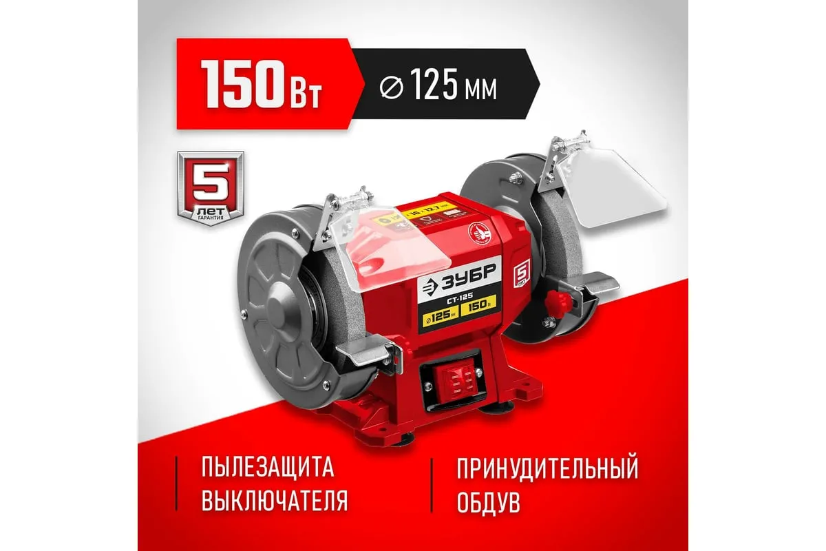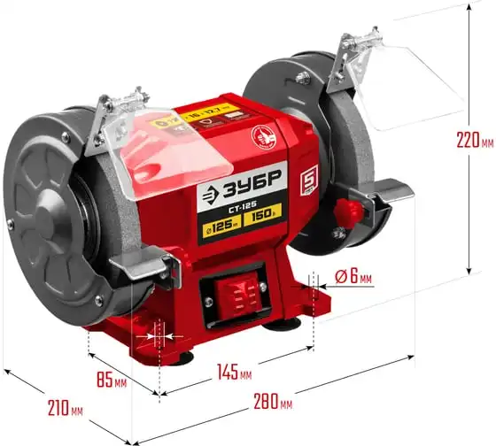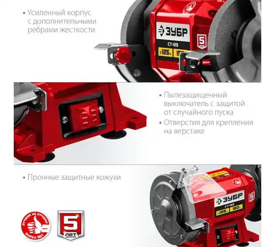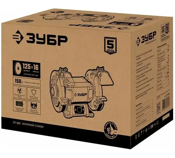 Заточной станок ЗУБР d 125 мм СТ-125 предназначен для установки в мастерской и на предприятии мелкосерийного производства. Агрегат используется для заточки, а также шлифовки металлических заготовок и режущего инструмента.
