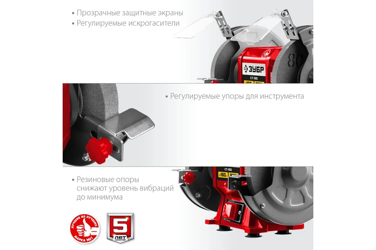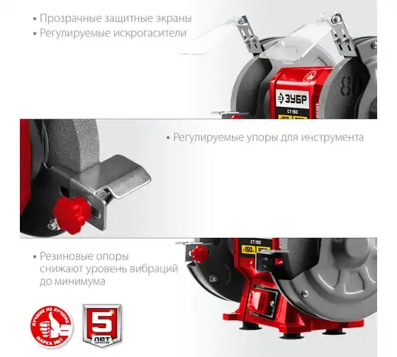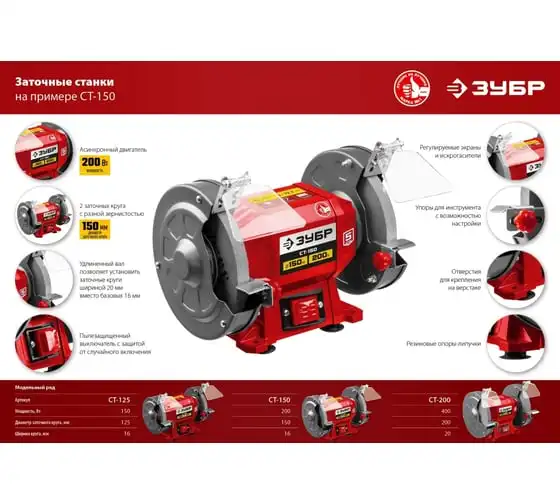 Заточной станок ЗУБР d 150 мм СТ-150 предназначен для шлифовки и заточки металлических заготовок и режущего инструмента. Данная модель отлично подойдет для эксплуатации в мастерской, а также на предприятии мелкосерийного производства.