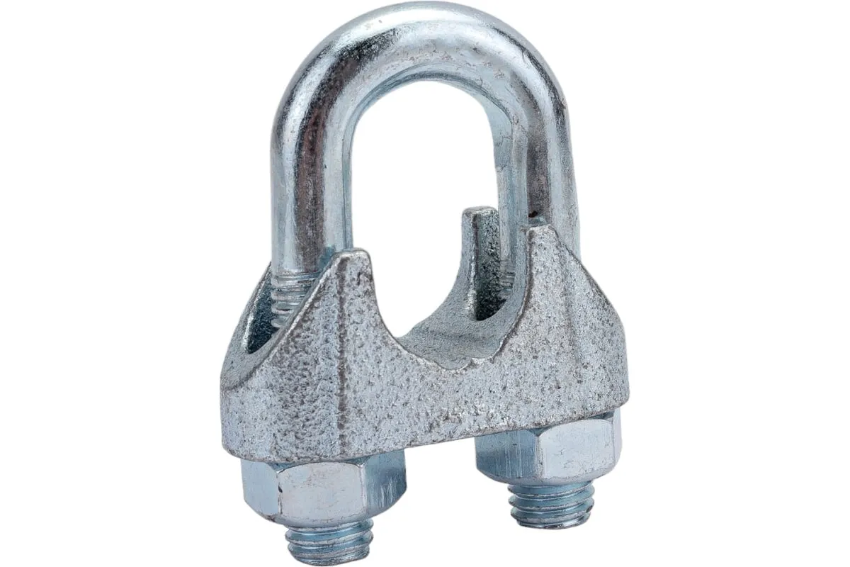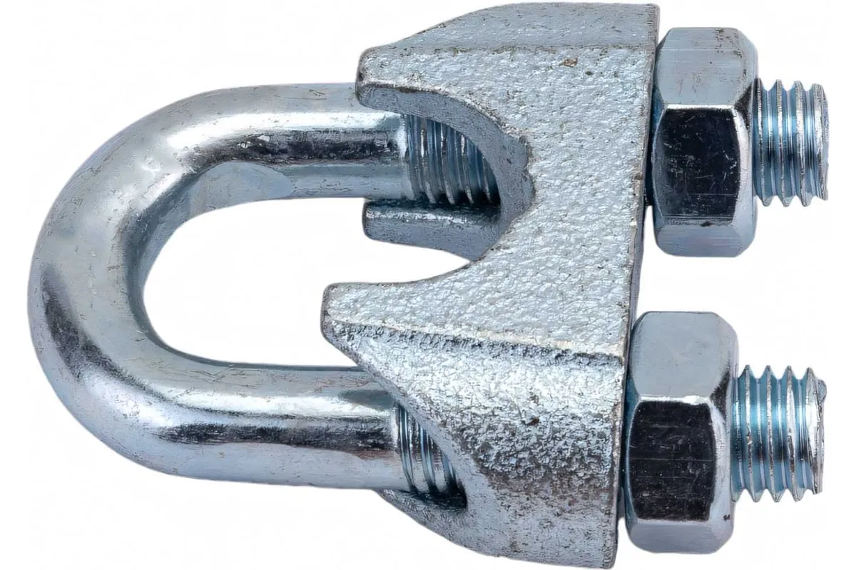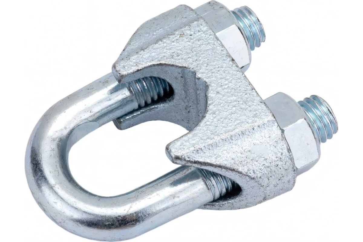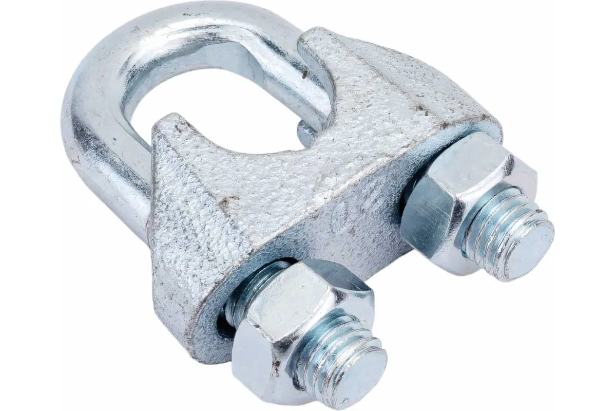 Зажим для канатов изготовлен из оцинкованной стали, предназначен для соединения тросов, канатов и изготовления петель на концах троса.