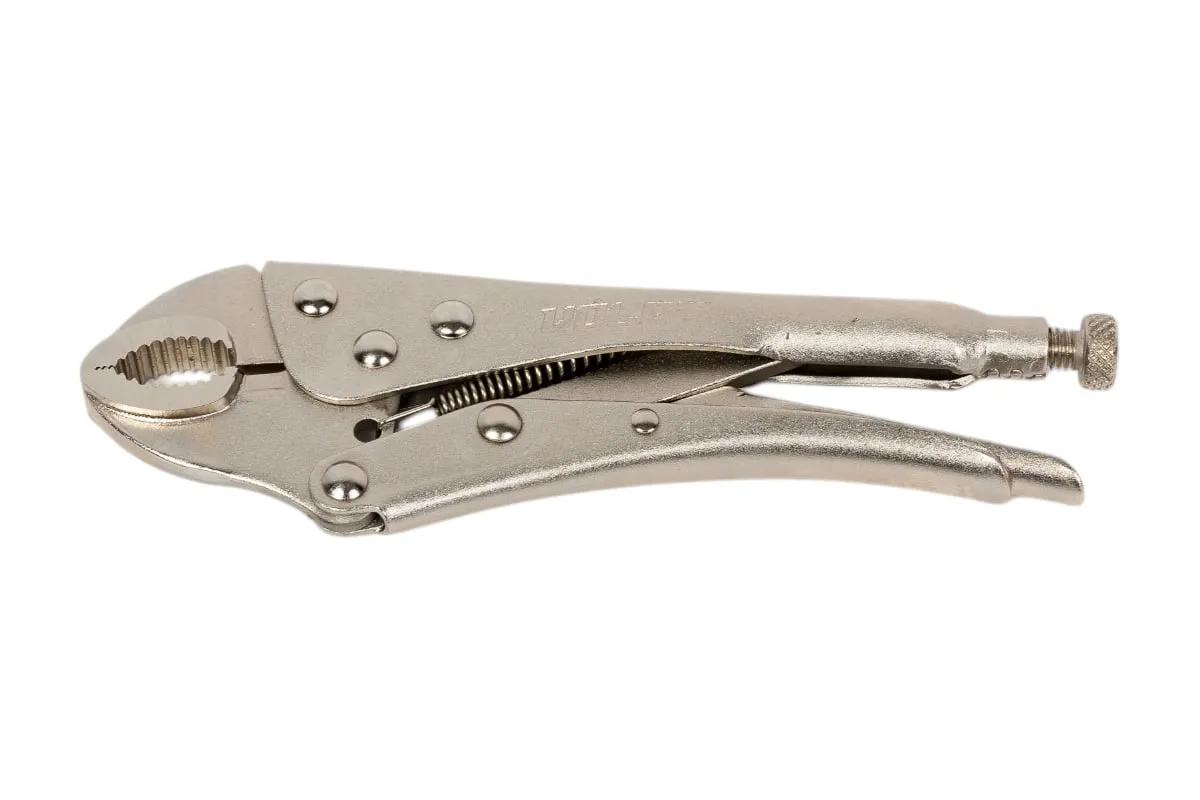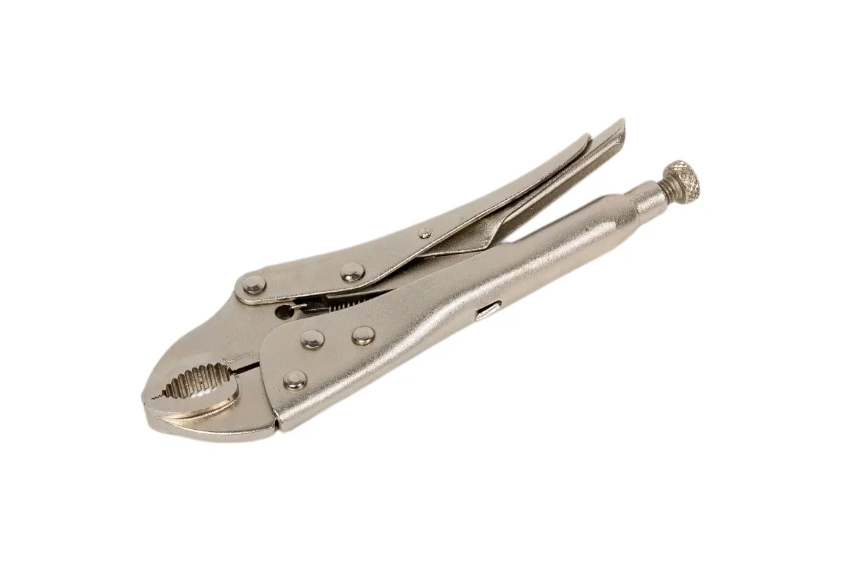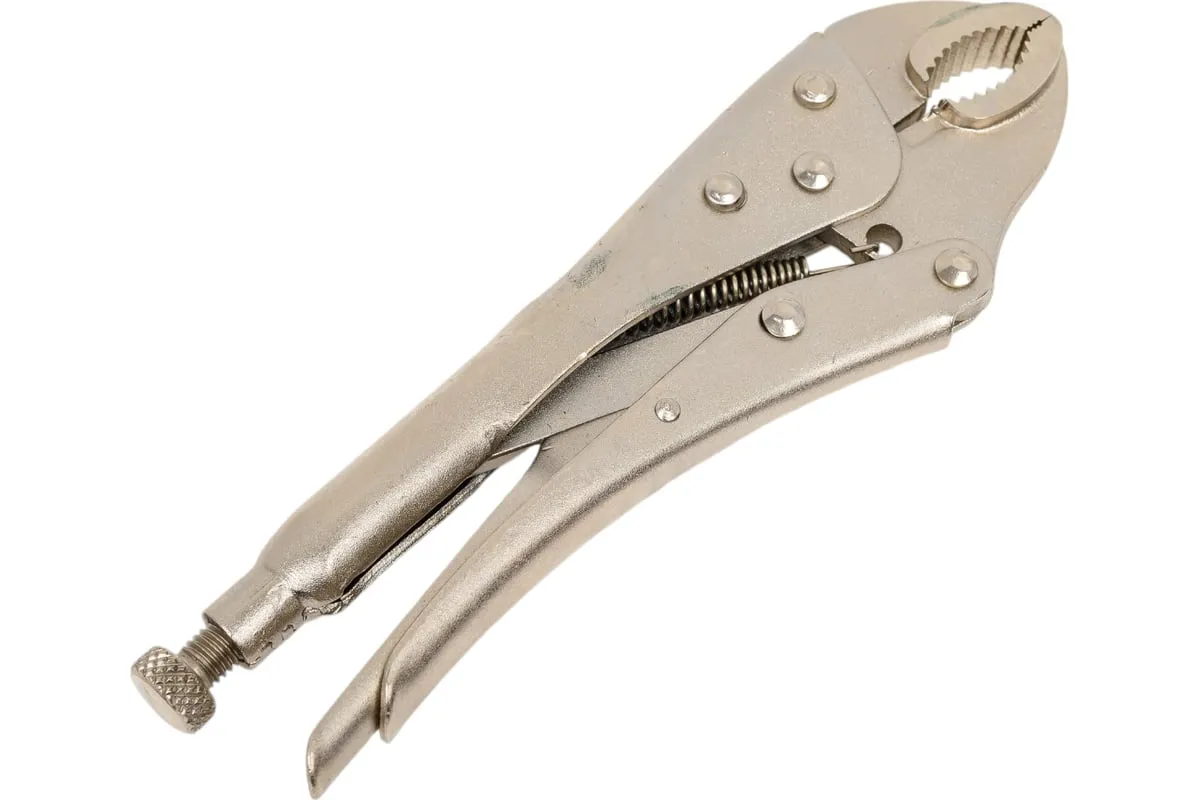 Зажим с фиксатором 180 мм изогнутые губки предназначен для надёжной фиксации деталей и предметов при выполнении слесарно-монтажных и сварочных работ. Регулировка зева осуществляется при помощи винта в ручке зажима. Зажим выполнен из углеродистой стали.