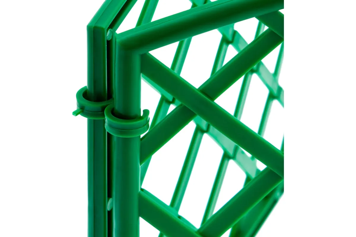 Зеленый декоративный забор Плетенка Россия 65006 предназначен для оригинального оформления садового участка. Элегантный вид ограждения поможет обновить и добавить изюминку, а также произвести деление участка на зоны. Размеры одной секции 334х460 мм, толщина 10 мм.