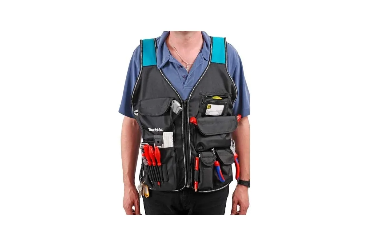 Жилет монтажника Makita P-72089 предназначен для размещения необходимых предметов и инструментов.