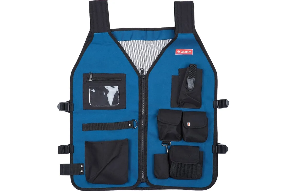 Жилет монтажника Зубр ЭКСПЕРТ 38638 предназначен для удобной переноски инструментов и мелких деталей во время работы. Изготовлен из прочного нейлона, который обеспечивает долгий срок эксплуатации. Имеет много карманов разного размера, где легко размещаются необходимые принадлежности. Длина 60 см, ширина 50 см.