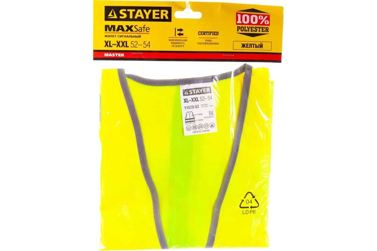 Жилет STAYER MASTER размер XXL, 52-54 11620-52 изготовлен из прочного материала, которыйобладает долгим сроком службы. Хорошо стирается, не деформируется ине теряет свой цвет. Оснащен светоотражающими лентамидля безопасной работы в темное время суток.