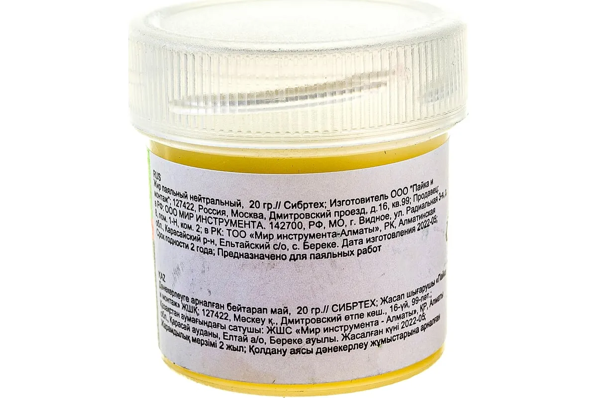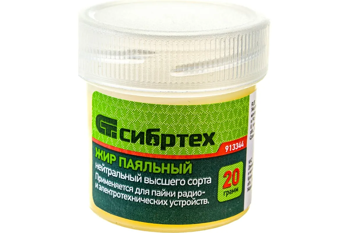 Жир нейтральный Сибртех 913344 применяется для пайки радио- и электротехнических устройств. Хорошо держится на металлических контактах, обеспечивая точное дозирование и высокую скорость нанесения на большое количество мест паек. Не требует удаления остатков после пайки. Масса — 20 гр.