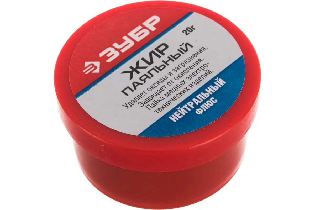 Жир нейтральный Зубр 55477-020 применяется для пайки радио- и электротехнических устройств. Хорошо держится на металлических контактах, обеспечивая точное дозирование и высокую скорость нанесения на большое количество мест паек. Не требует удаления остатков после пайки.