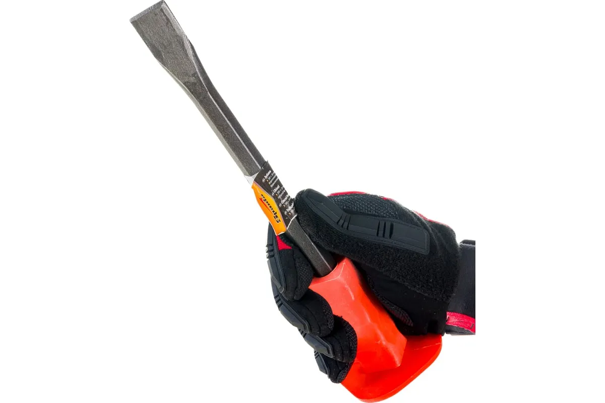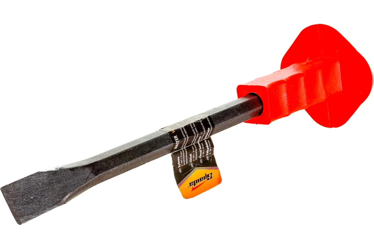 Зубило 300 х 25 мм SPARTA 187605 предназначено для рубки металла, камня и цемента. Оно изготовлено из легированной стали марки 65 Mn и обладает твердостью рабочей части – 52–58 HRc. Инструмент оснащен специальным протектором, защищающим руку от промахов при ударах молотком.